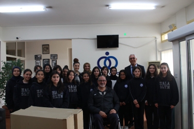 Lefkoşa, 25 Mart 23 (TAK): Hala Sultan İlahiyat Koleji 6-D sınıfı öğrencileri ve öğretmenleri, 5 adet tekerlekli sandalye bağışı yaptı.