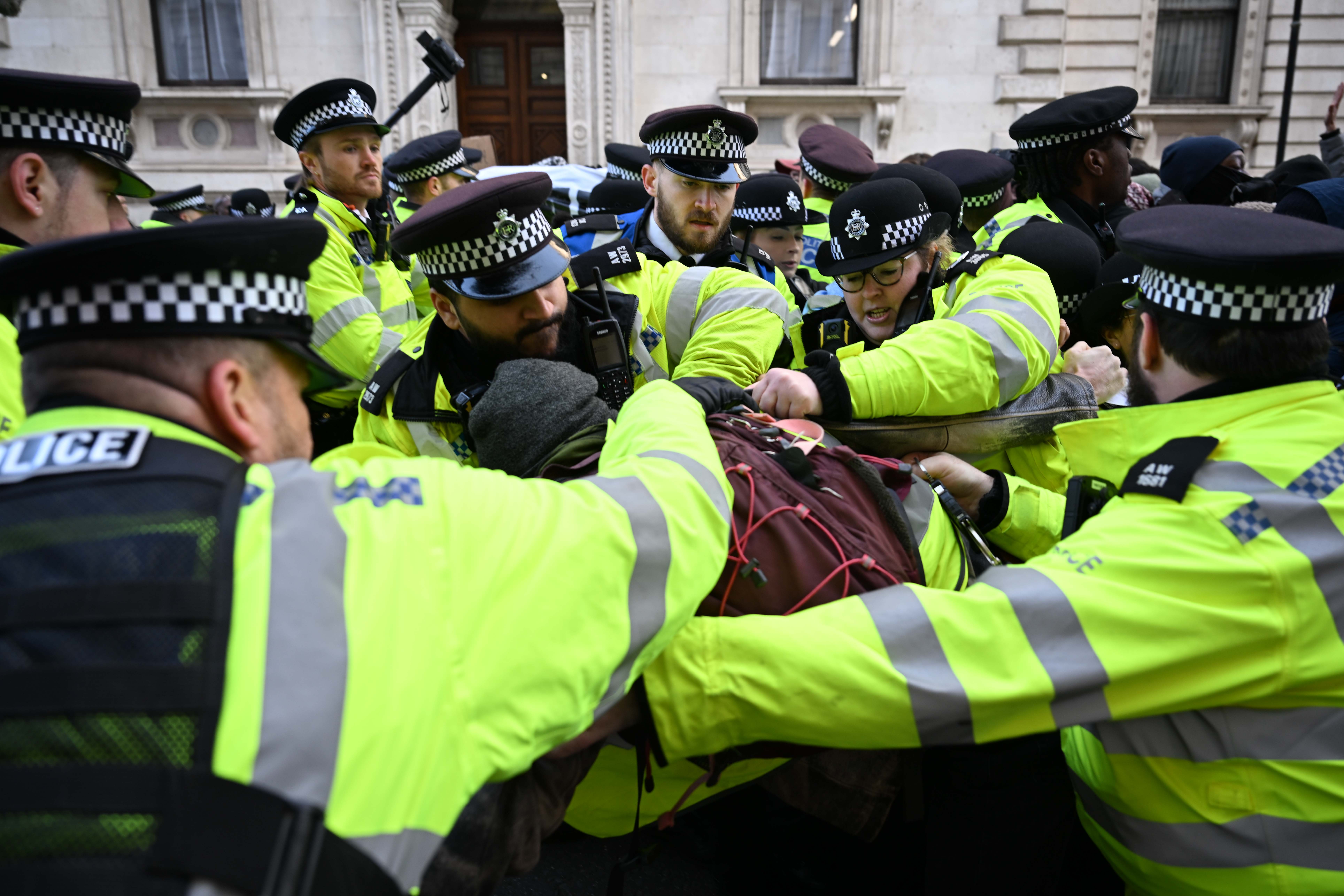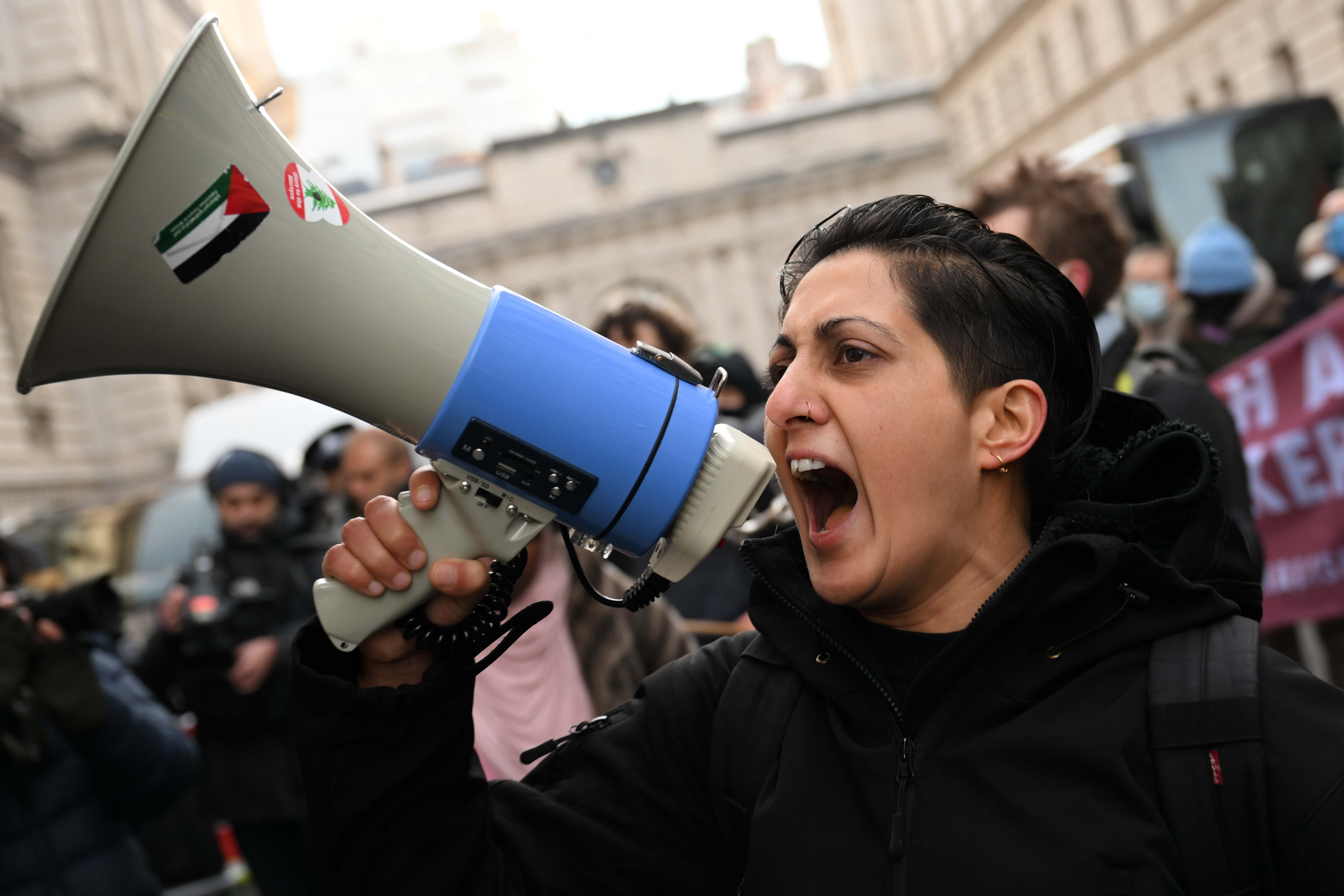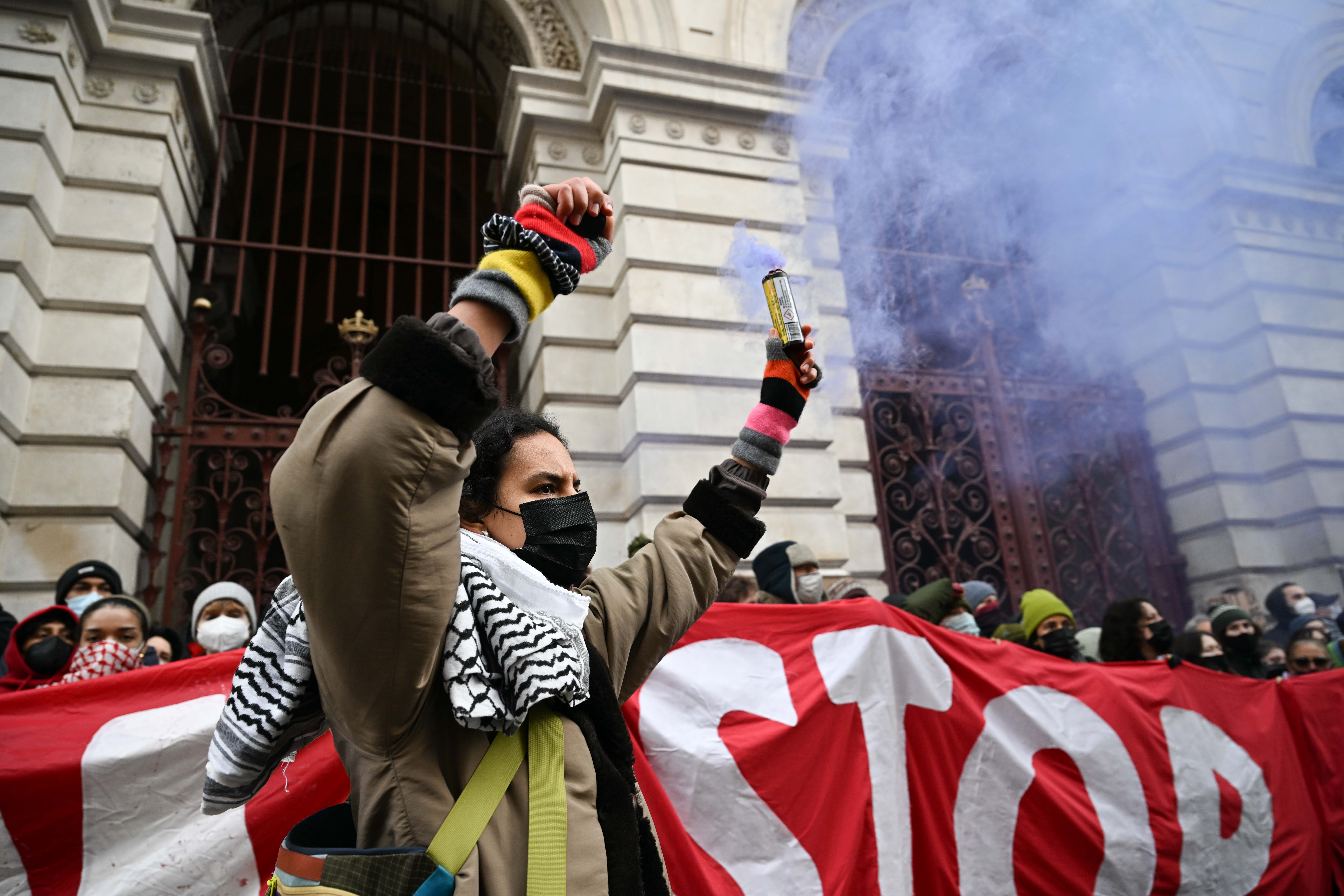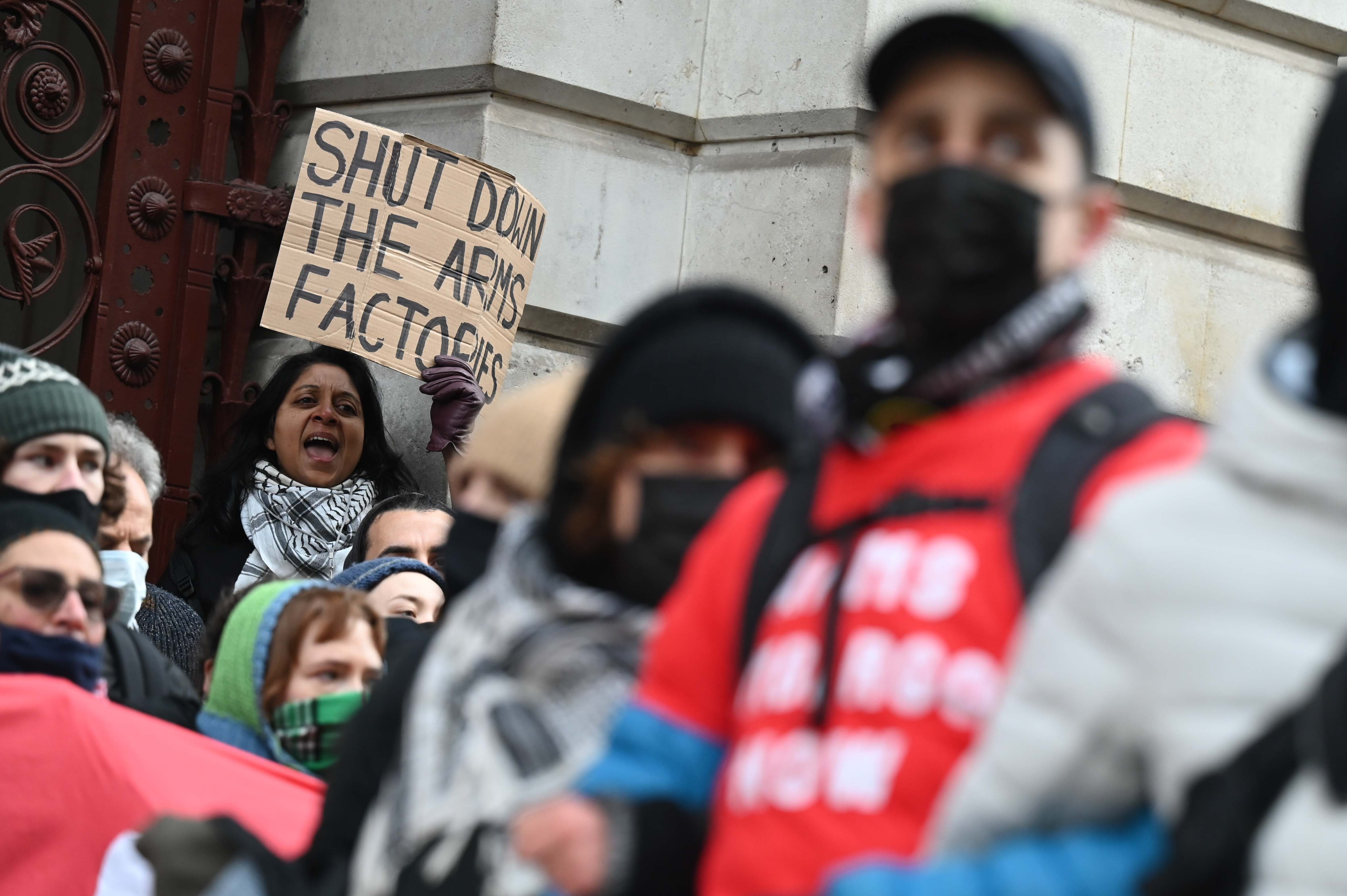 Londra, 28 Kasım 24 (TAK): İngiltere'de Filistin destekçisi gruplar, Dışişleri Bakanlığının girişini kapatarak İngiltere'nin İsrail'e tüm silah satışını sonlandırması çağrısında bulundu.