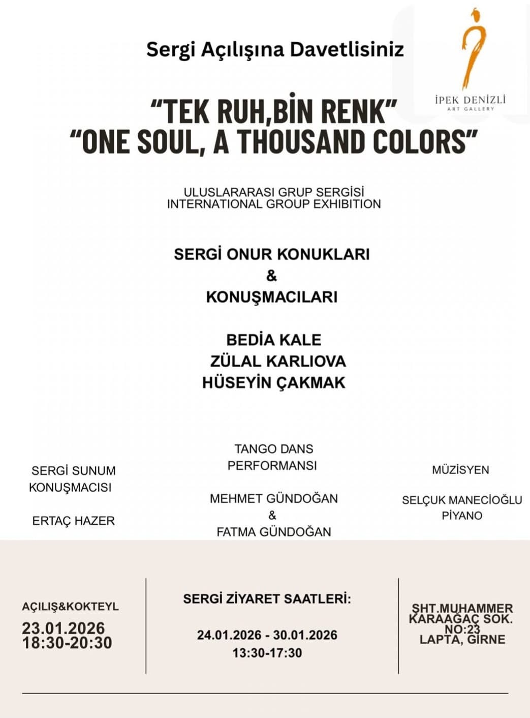 Ocak 26 (TAK): İpek Denizli Sanat Galerisi tarafından düzenlenen “Tek Ruh, Bin
