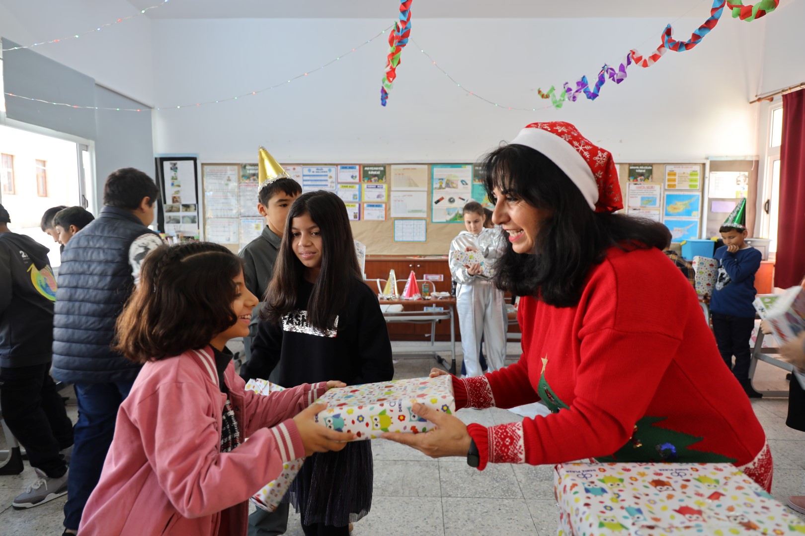 Lefkoşa, 29 Aralık 23 (TAK): İskele Belediyesi, her sene yaptığı gibi, yılın son ders gününde bölge okullarını ziyaret ederek, çocuklarına yeni yıl hediyelerini dağıttı.