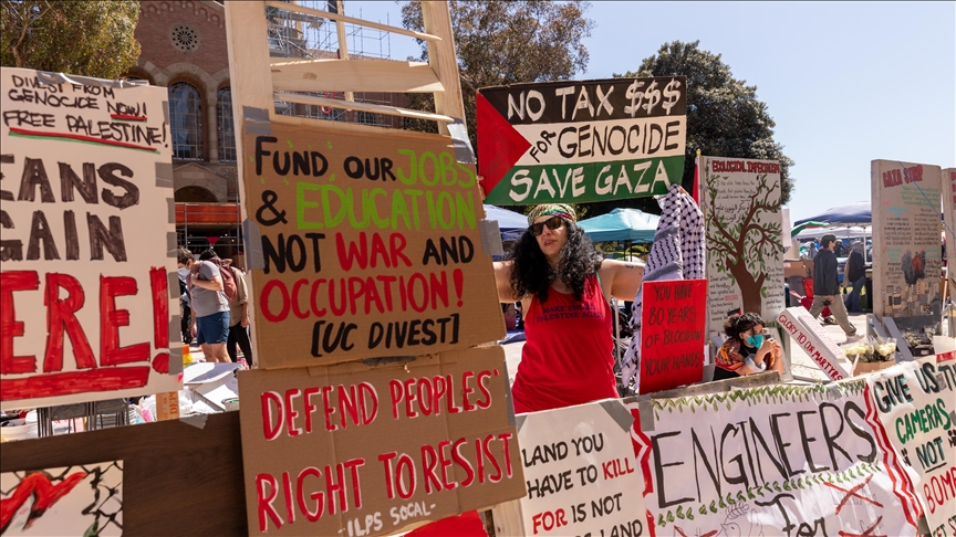 Ankara, 1 Mayıs 24 (TAK): ABD'de çoğunun yüzleri maskeli bir grup İsrail yanlısı, California Üniversitesinde Filistin destekçisi öğrencilerin kurduğu Gazze Dayanışma Kampı'na saldırırken o anlarda bölgede hiçbir güvenlik görevlisinin bulunmaması dikkati çekti.