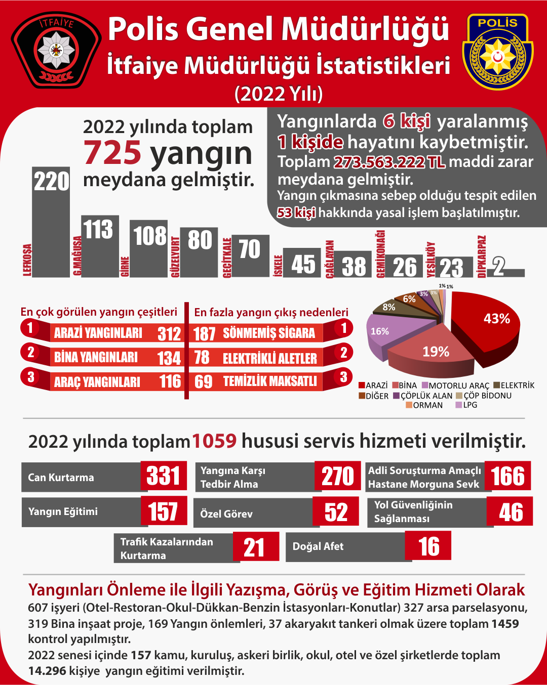 İtfaiye Müdürlüğü: “2022’de 725 yangın meydana geldi, yangın sonucunda 6 kişi yaralandı, 1 kişi hayatını kaybetti”