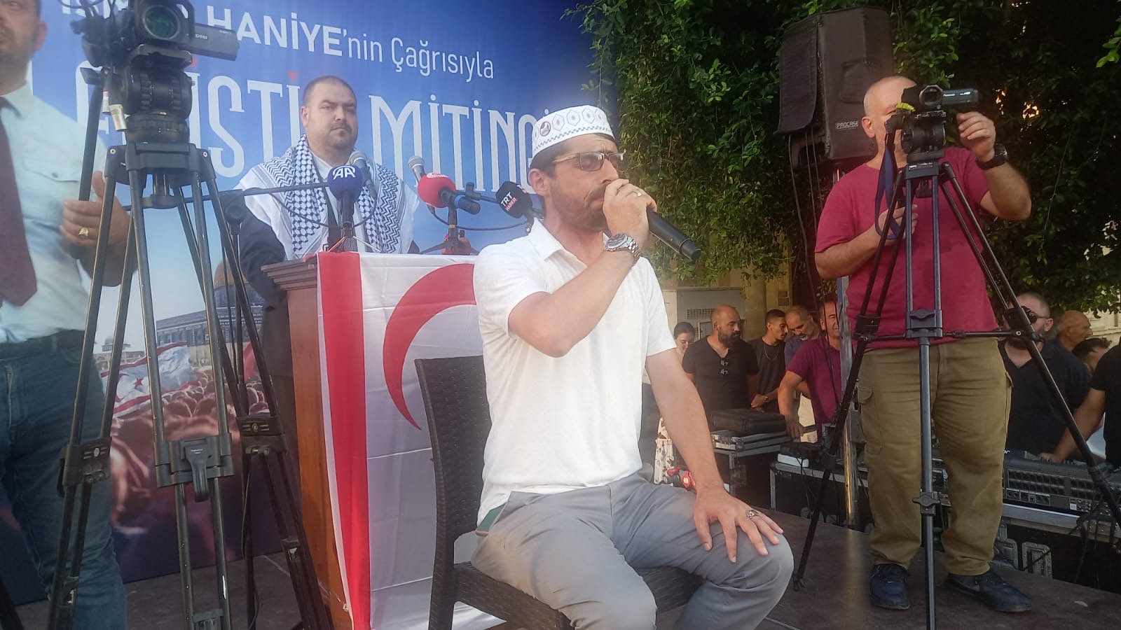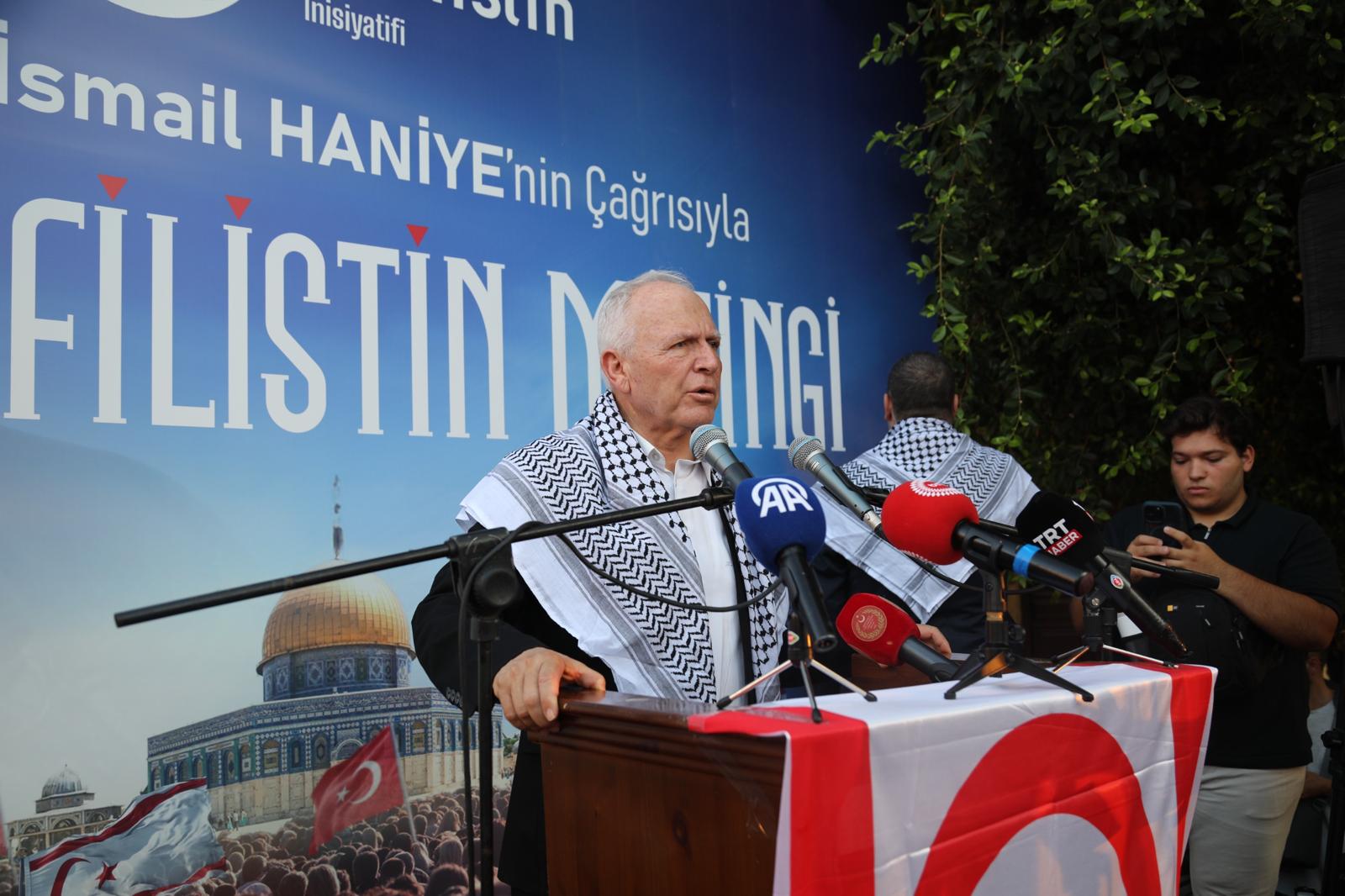 Lefkoşa, 3 Ağustos 24 (TAK): Kıbrıs Filistin İnisiyatifi, Lefkoşa Sarayönü’nde İsrail’in Gazze’de yürüttüğü “soykırımı” kınamak için miting düzenledi.
