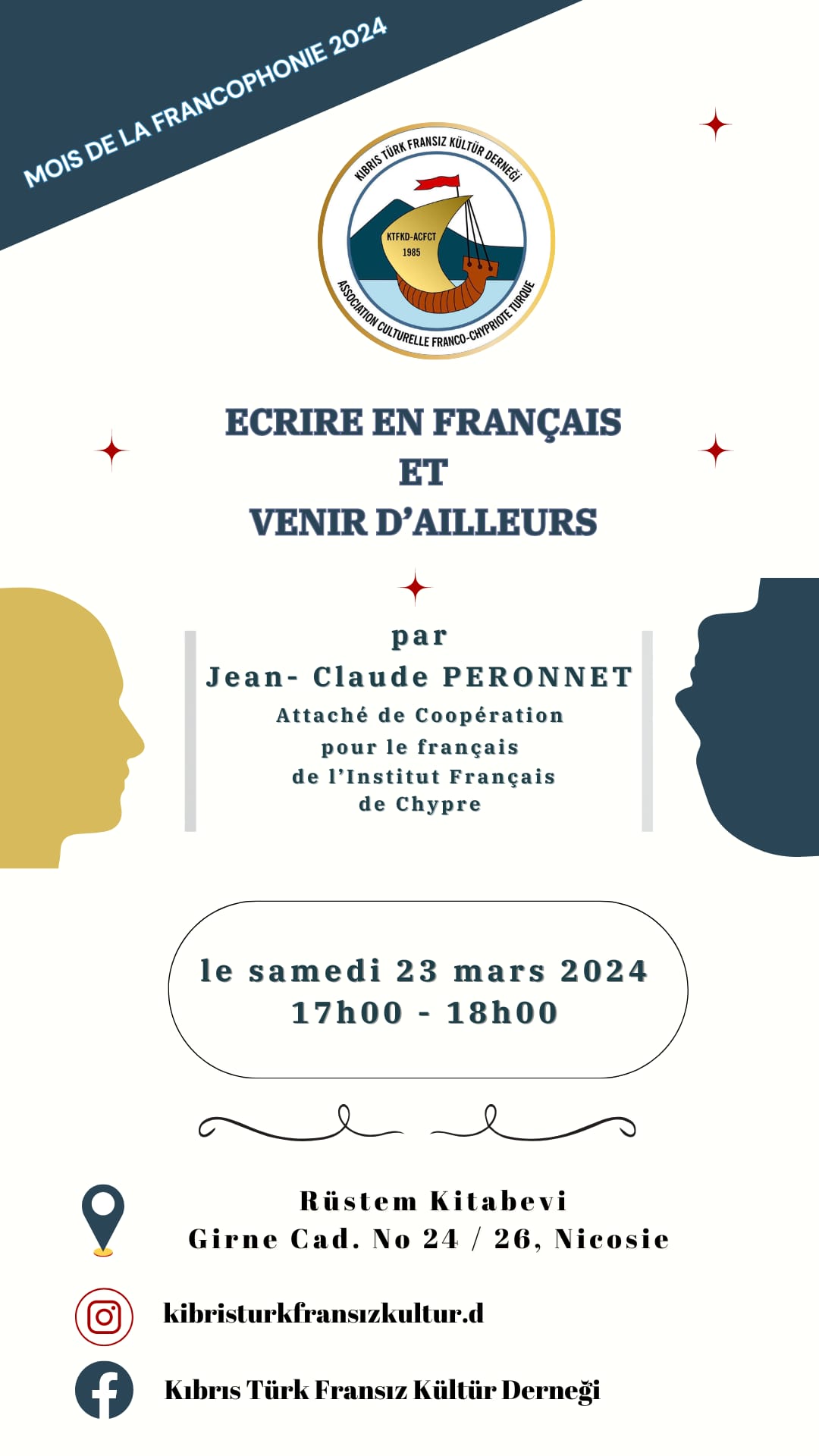 Lefkoşa, 24 Mart 24 (TAK): Kıbrıs Türk Fransız Kültür Derneği, “Frankofoni'nin zenginliğini ve çeşitliliğini kutlamak amacıyla” 20. Frankofoni Etkinliği'ni düzenledi.