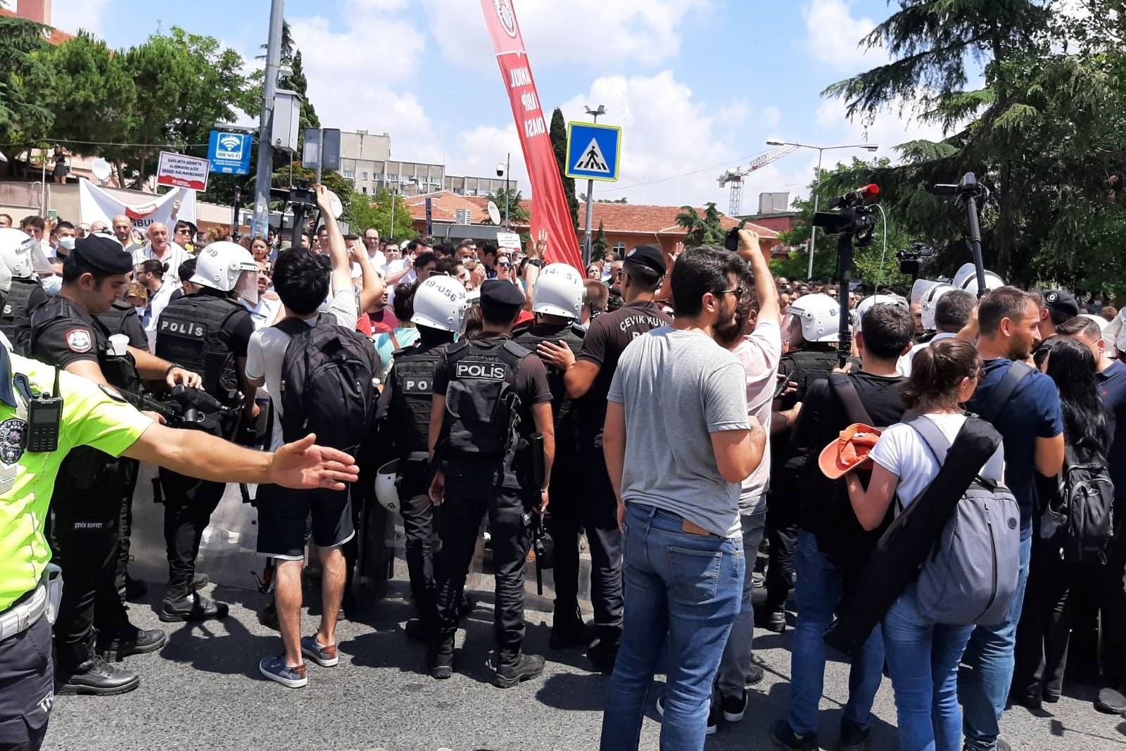 sürüyor. Eylem yapan sağlık çalışanları ile hekimler polis müdahalesiyle