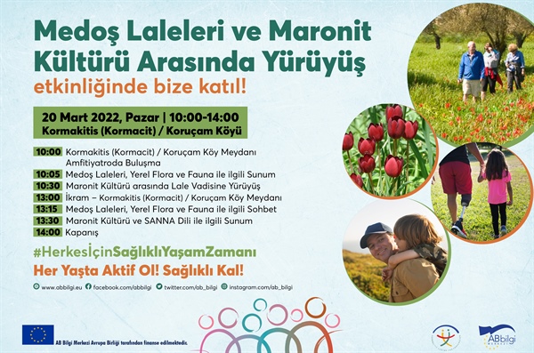 Lefkoşa, 18 Mart 22 (TAK): Avrupa Komisyonu’nun desteğiyle yürütülmekte olan Herkes İçin Sağlıklı Yaşam Kampanyası kapsamında pazar günü 10.00-14.00 saatleri Koruçam köyünde “Medoş Laleleri ve Maronit Kültürü Arasında Yürüyüş” etkinliği düzenlenecek.