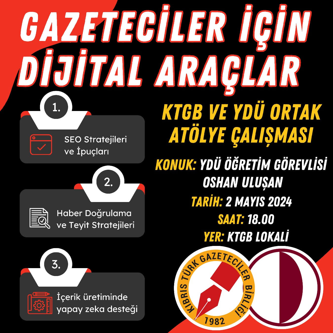 Yarın saat 18.00’de “Gazeteciler İçin Dijital Araçlar” konulu eğitim verilecek