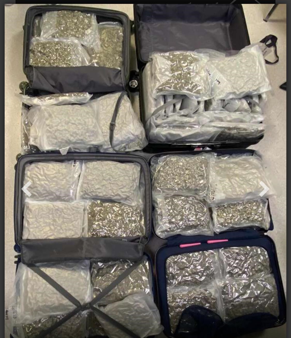 Lefkoşa, 19 Haziran 24 (TAK): Larnaka Havalimanı'nda öğle saatlerinde 20 ve 22 yaşlarındaki iki kadının bavullarında 41 kilo ağırlığında hintkeneviri saptandı. Güney Kıbrıs’a adı belirtilmeyen bir ülkeden giden ve uyrukları halkında bilgi verilmeyen kadınlar tutuklandı.