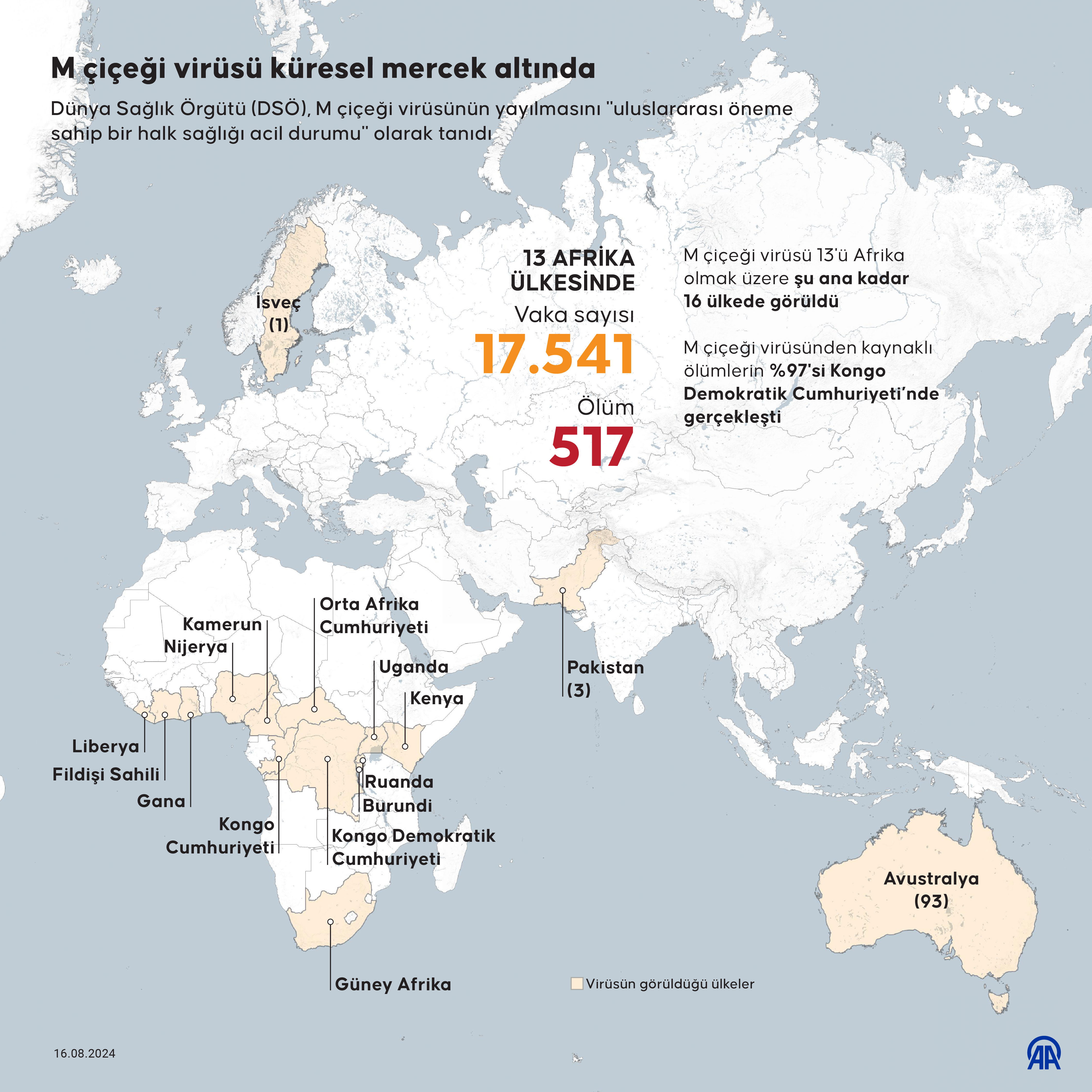 İstanbul, 16 Ağustos 24 (TAK): Dünya Sağlık Örgütünün (DSÖ) M çiçeği virüsünün yayılmasını "uluslararası öneme sahip bir halk sağlığı acil durumu" olarak tanımasının ardından virüsün yol açtığı hastalık merak konusu oldu.