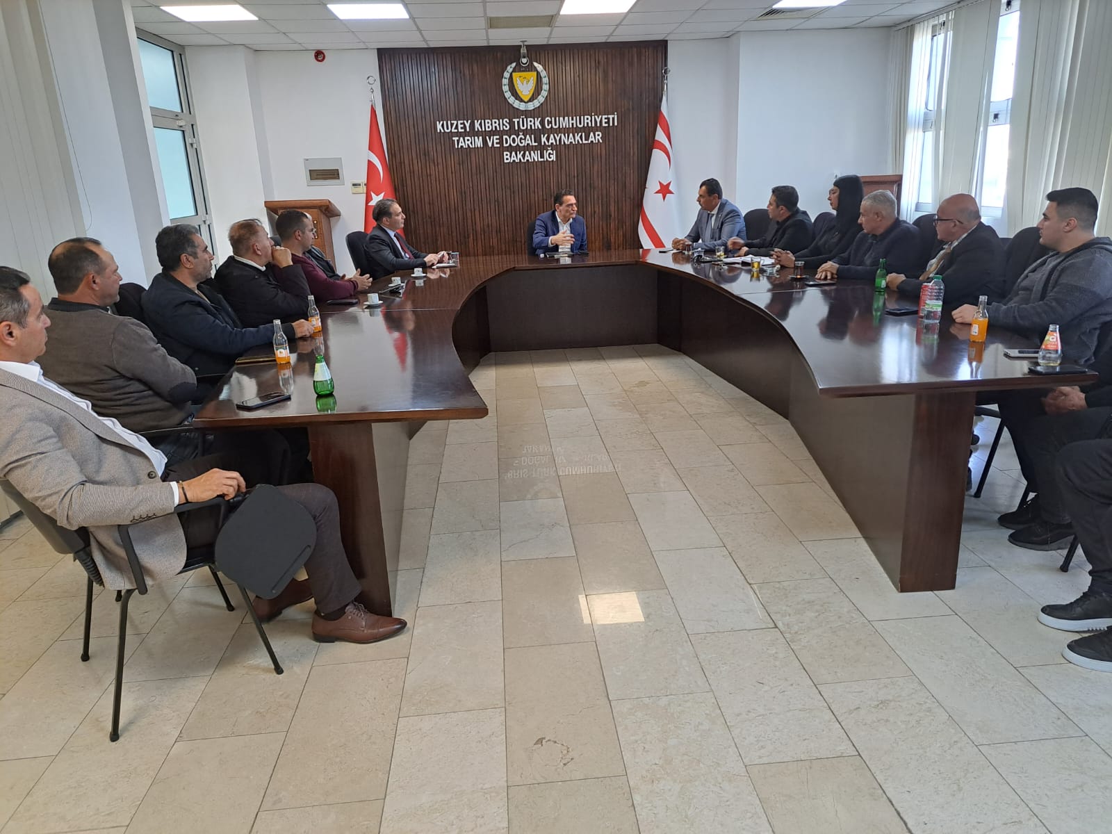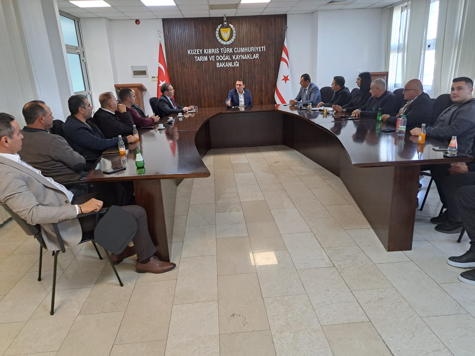 Lefkoşa, 13 Mart 23 (TAK): Tarım ve Doğal Kaynaklar Bakanı Dursun Oğuz Kıbrıs Türk Narenciye Üreticileri Birliği Başkanı Ali Alioğlu ve yönetim kurulunu kabul etti.