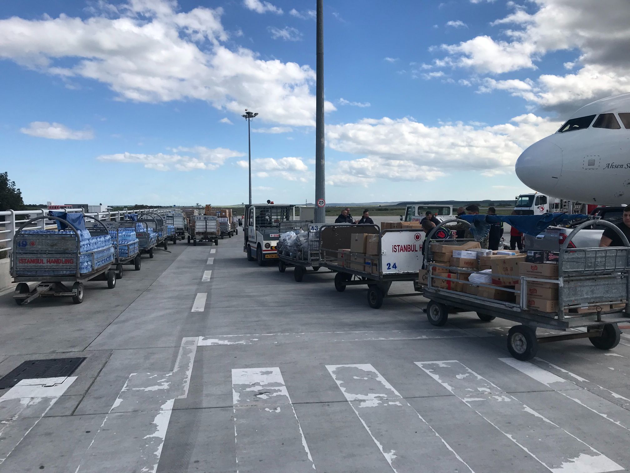 İşletmeciliği Genel Müdürü M. Serhat Özçelik, Ercan Havalimanı’na gelen yardımların deprem bölgelerine gönderilmeye devam edildiğini belirtti.
