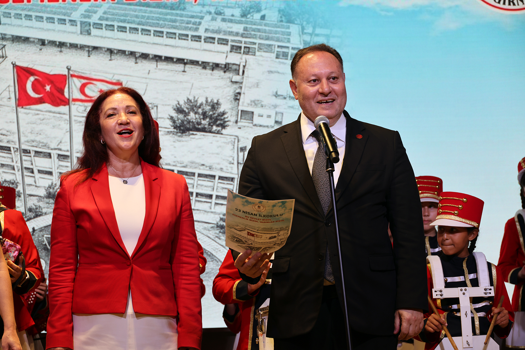 Lefkoşa, 29 Nisan 26 (TAK): Cumhuriyet Meclisi Başkanı Ziya Öztürkler, 23 Nisan İlkokulu öğrencilerini, okul yönetimini ve öğretmenlerini kabul etti.