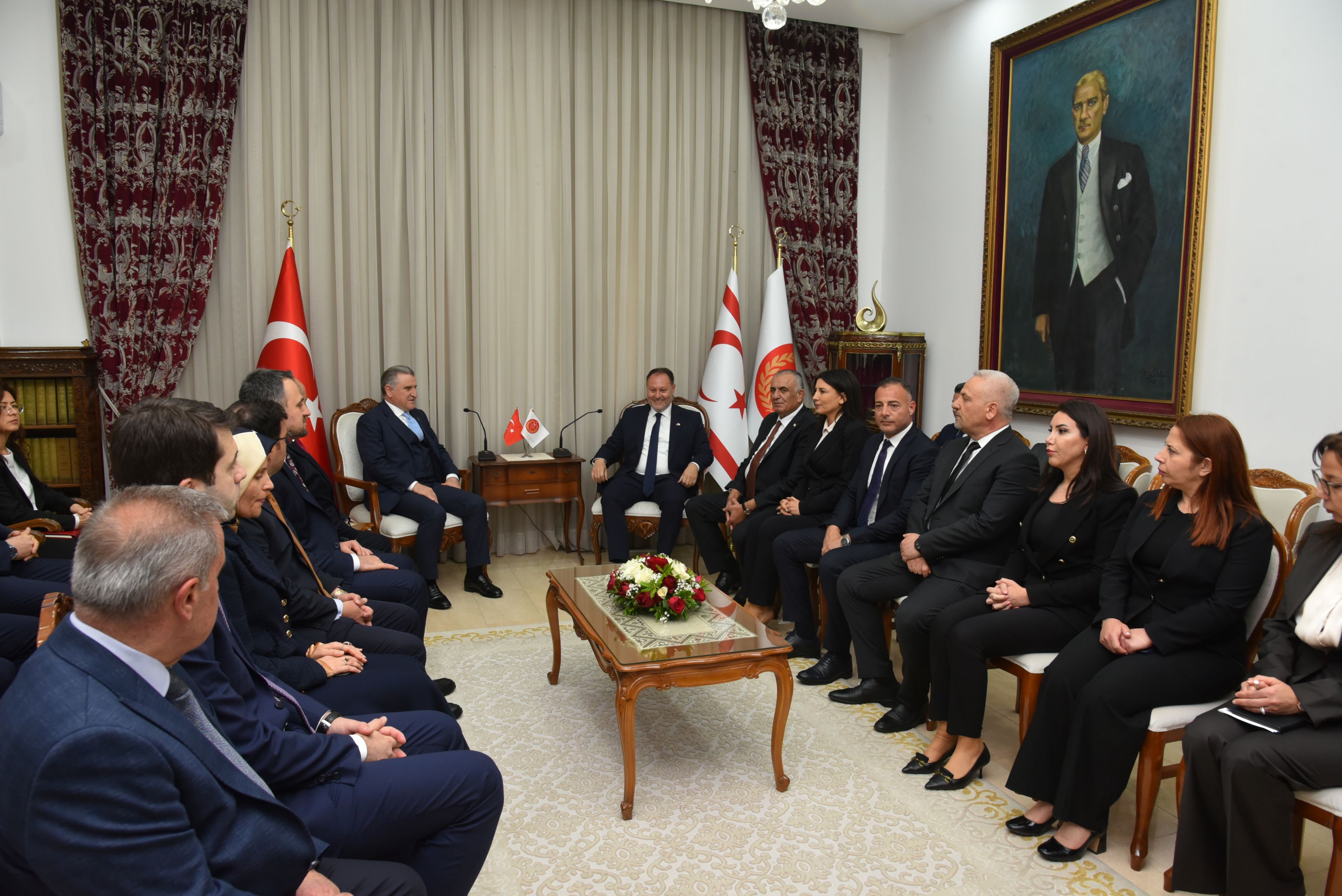 Lefkoşa, 12 Şubat 25 (TAK): Cumhuriyet Meclisi Başkanı Ziya Öztürkler, T.C. Gençlik ve Spor Bakanı Osman Aşkın Bak ve beraberindeki heyeti kabul etti.