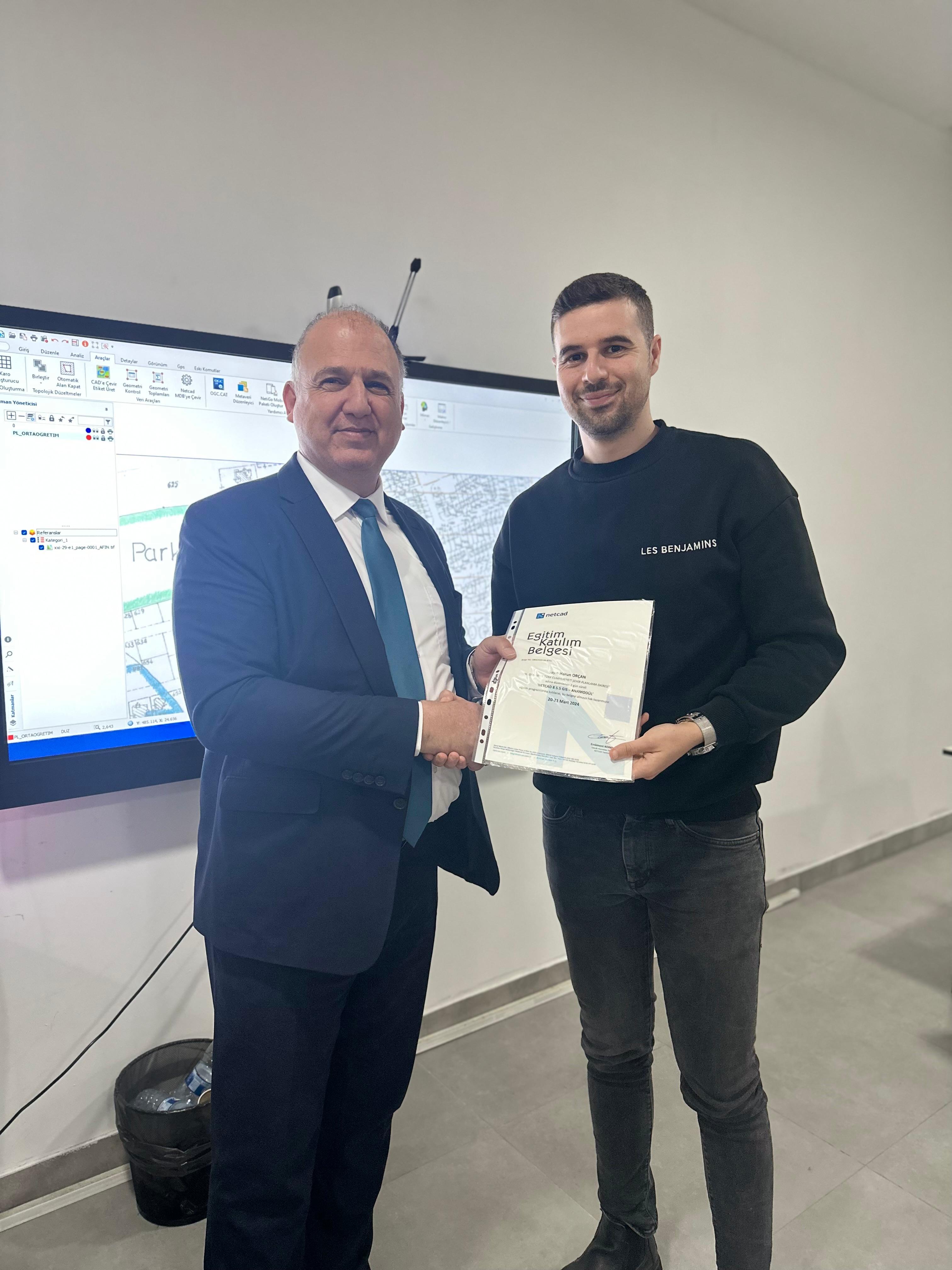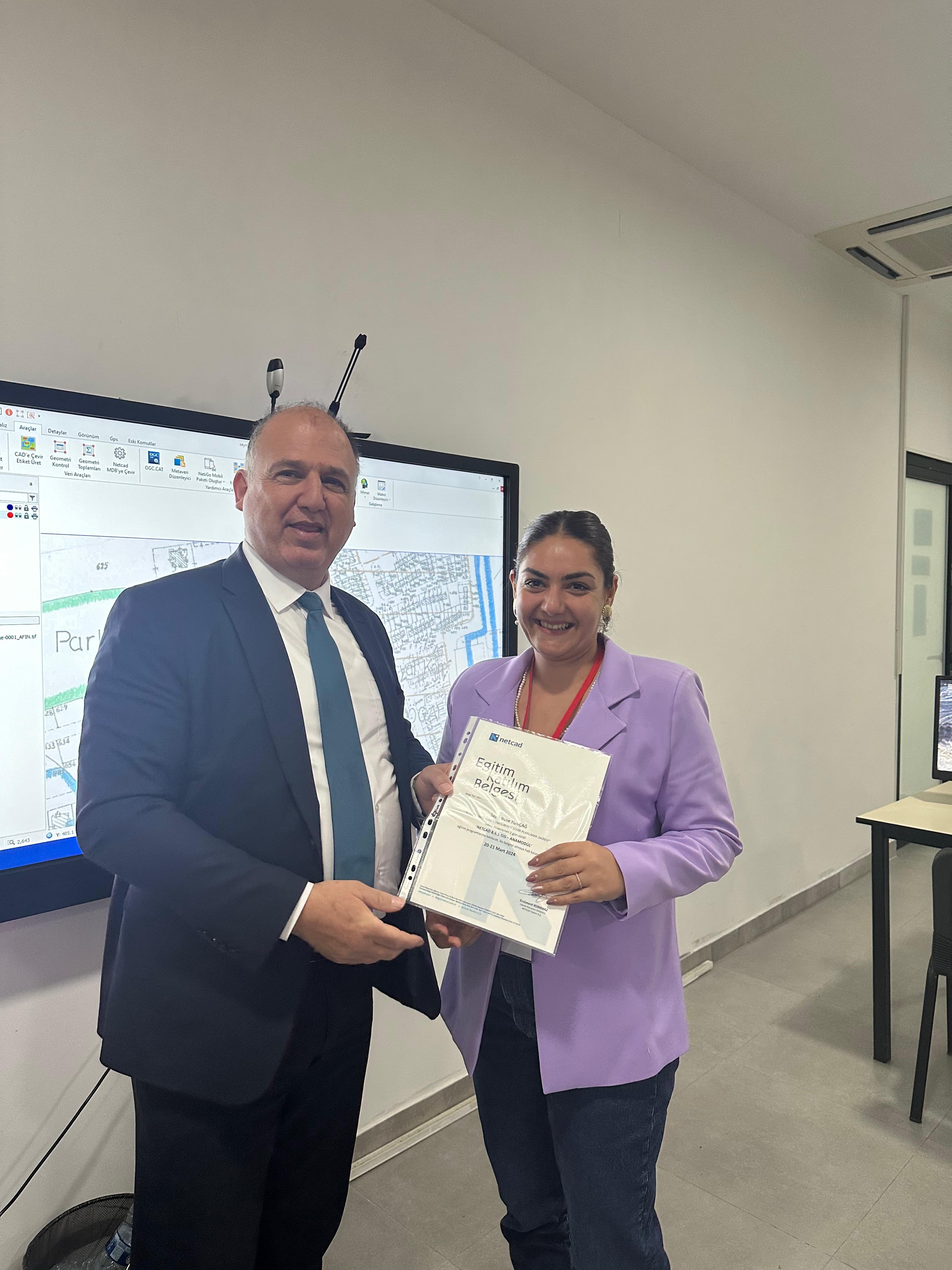 Eğitime katılarak başarı sağlayan 16 personele katılım belgeleri Şehir Planlama Dairesi Müdürü Türkmen Yiğitcan tarafından takdim edildi