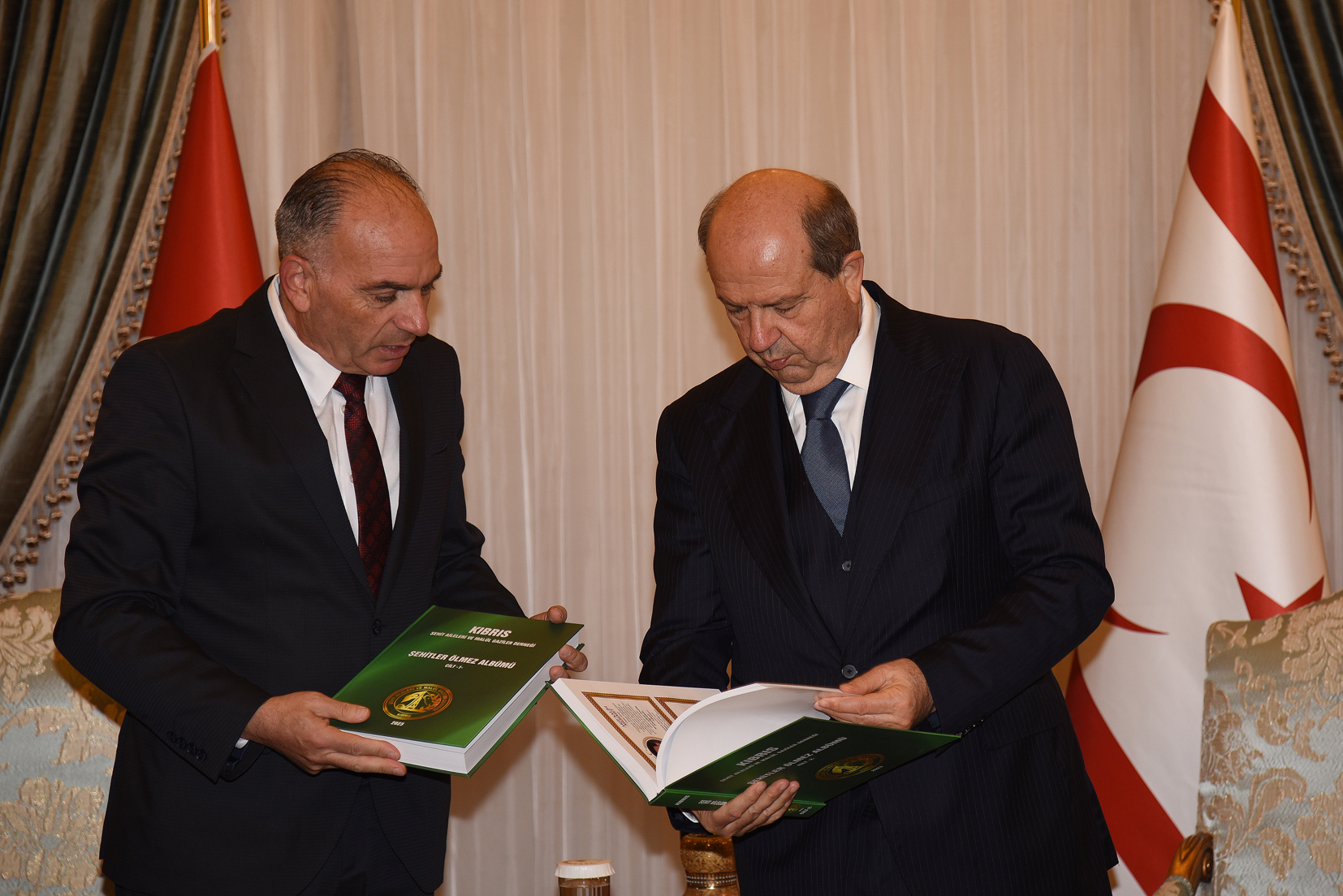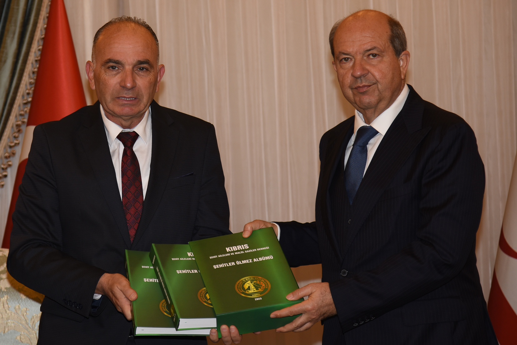Lefkoşa, 30 Ocak 24 (TAK): Şehit Aileleri ve Malül Gaziler Derneği, 1830 şehitle ilgili bilgi ve fotoğrafları derlediği “Şehitler Ölmez Albümü”nü Cumhurbaşkanı Ersin Tatar’a takdim etti.