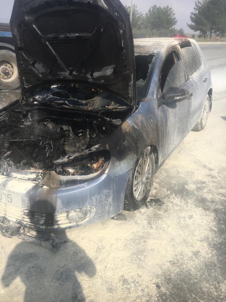 Lefkoşa, 1 Kasım 2022 (TAK) Gazimağusa Lefkoşa ana yolunda seyir halindeki araç, tespit edilemeyen nedende dolayı yandı.