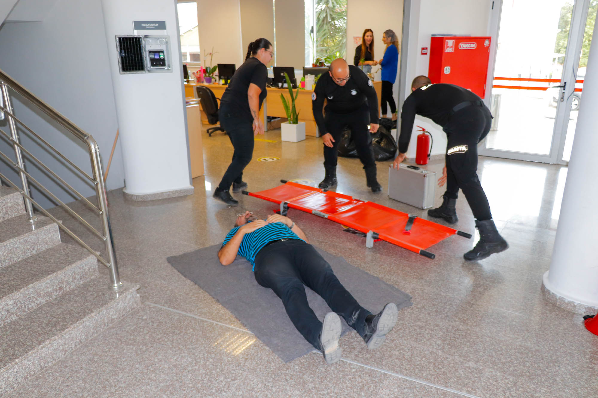 Lefkoşa, 20 Kasım 23 (TAK): Sivil Savunma Teşkilatı Başkanlığı Gazimağusa Bölge Müdürlüğü, “Yerinde Tatbikat ve Uygulama Eğitim” çalışması kapsamında Gazimağusa Belediyesinde deprem tahliyesi ve yangın tatbikatı yaptı.