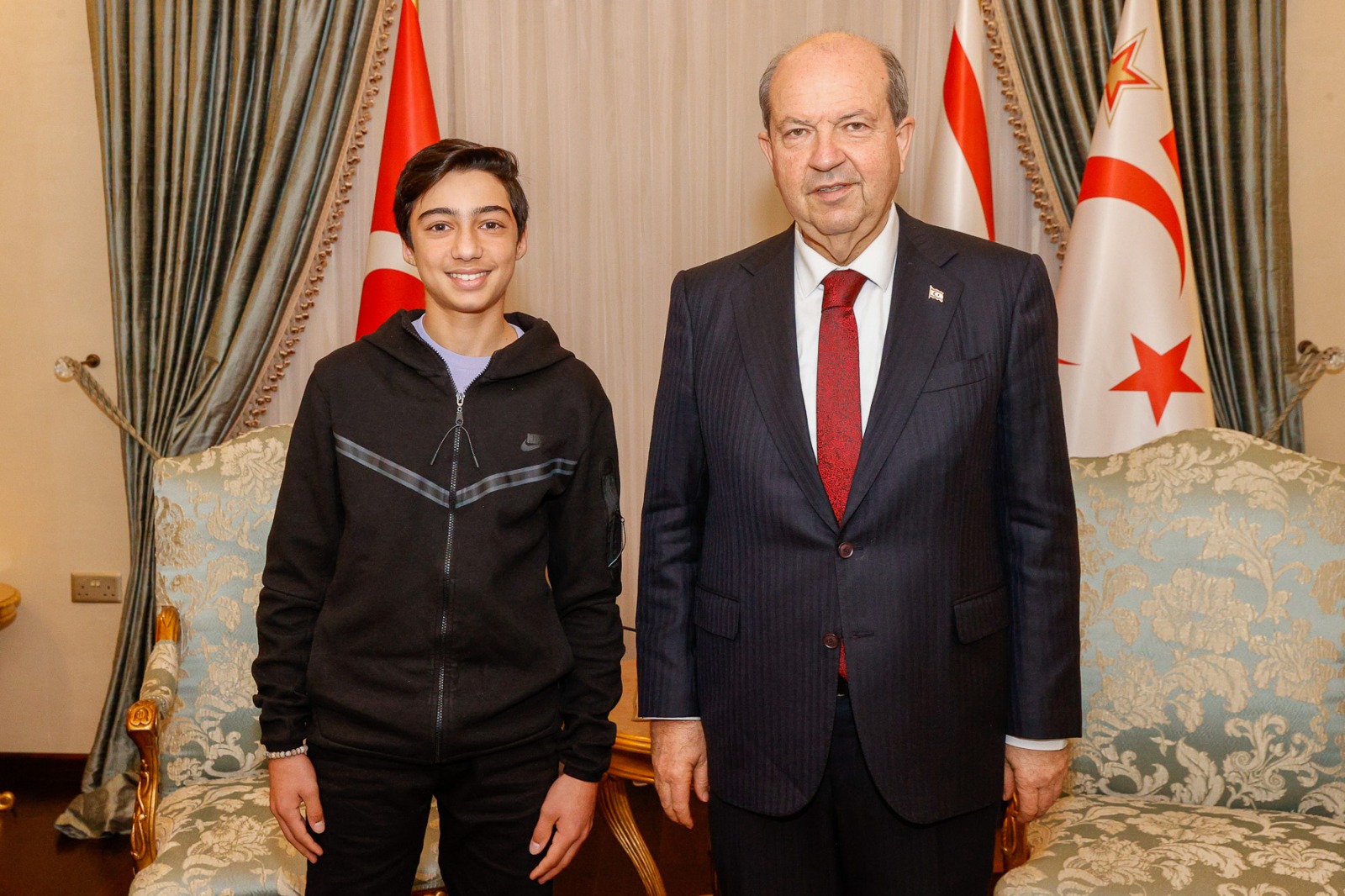 Lefkoşa, 23 Ocak 2023 (TAK): Cumhurbaşkanı Ersin Tatar, Türkiye Cumhuriyeti Tenis Milli Takımı’na seçilen Aren Baybars’ı kabul etti.