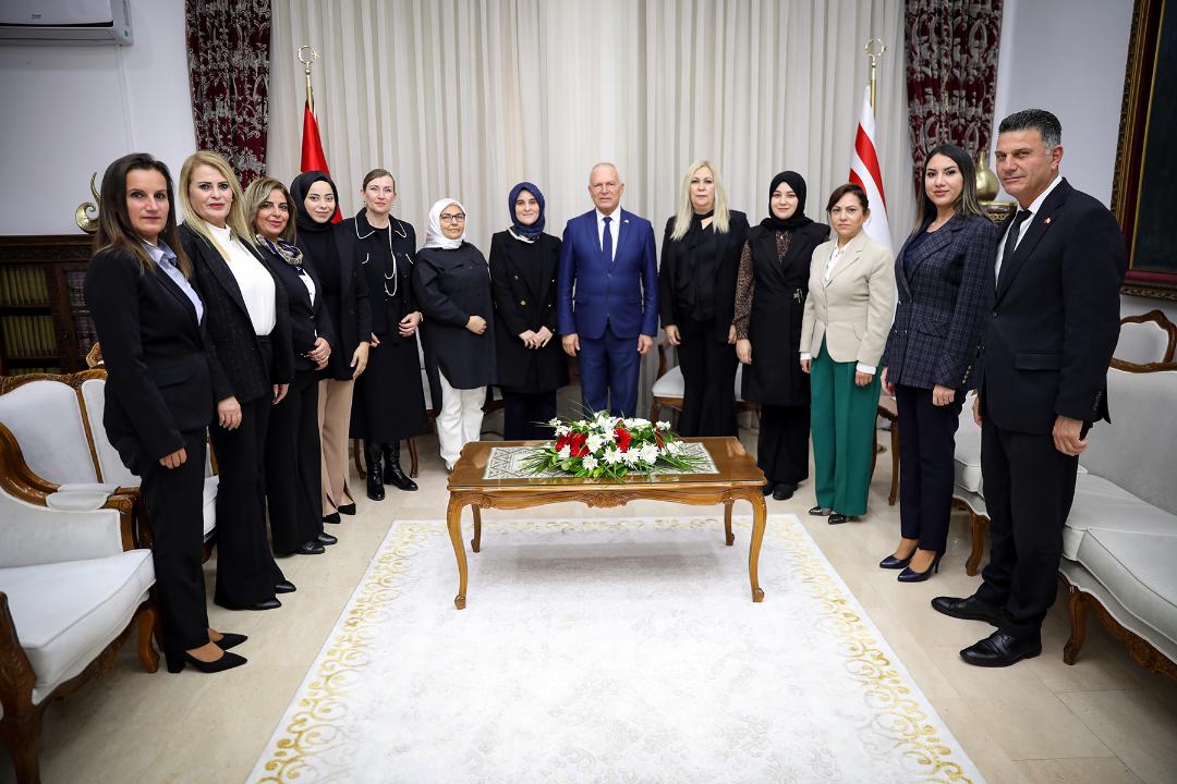 Lefkoşa, 30 Kasım 22 (TAK): Cumhuriyet Meclisi Başkanı Zorlu Töre, Selime Güntaş Işık başkanlığındaki AK Parti KKTC Temsilciliği Kadın Kolları heyetini kabul etti.