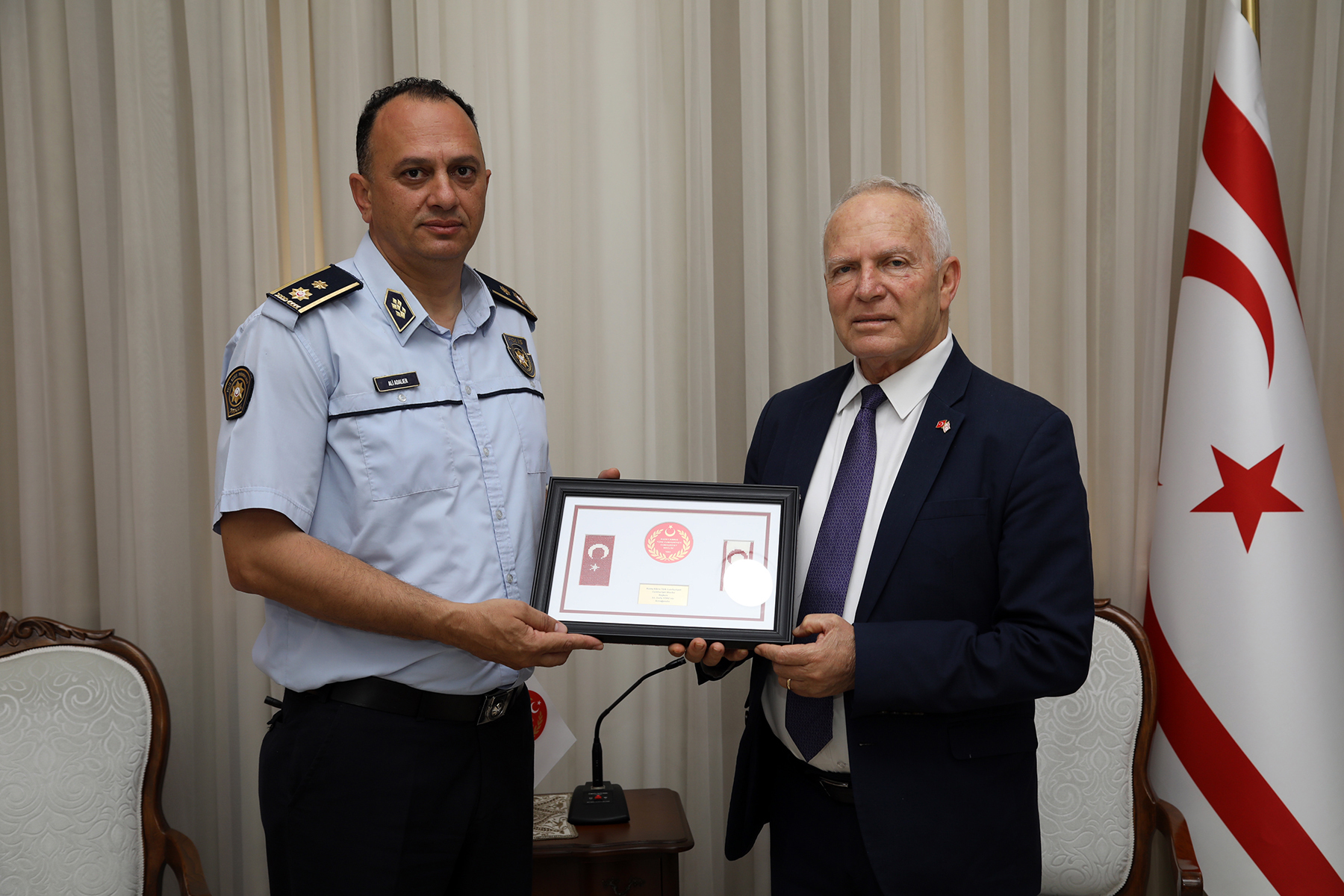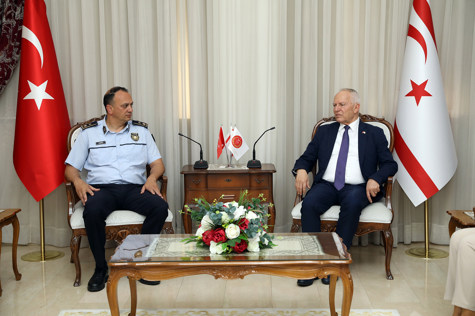 Lefkoşa, 26 Nisan 23 (TAK): Cumhuriyet Meclisi Başkanı Zorlu Töre, Lefkoşa Polis Müdürlüğü görevine atanan Ali Adalıer’i kabul etti.
