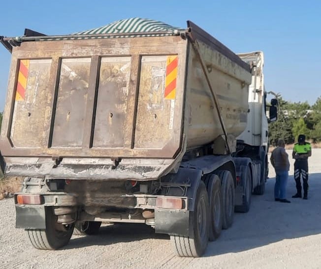 Polis, trafiğe çıkış saatlerine uymadığını belirlediği kamyonları trafikten men etti