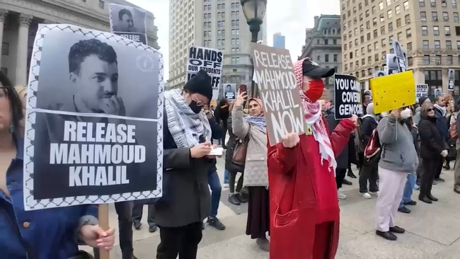 Ankara, 14 Mart 25 (TAK): ABD'de, Filistinli aktivist Mahmud Halil'in serbest bırakılması talebiyle Yahudi sivil toplum örgütü "Barış İçin Yahudilerin Sesi (JVP)" tarafından Trump Tower'da düzenlenen oturma eyleminde 98 kişinin gözaltına alındığı bildirildi.
