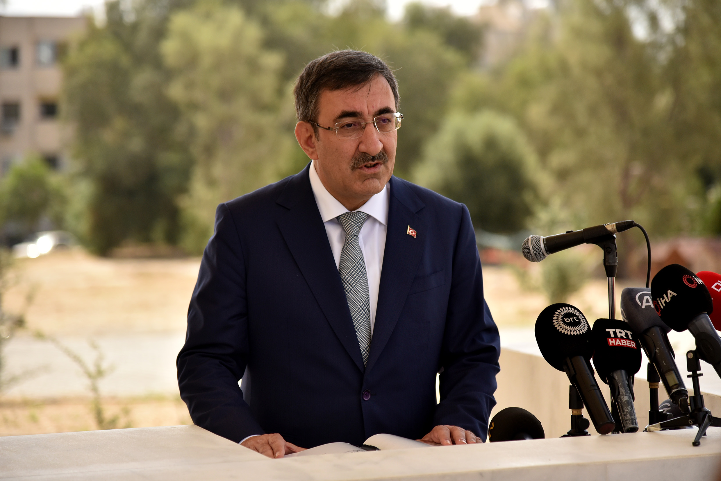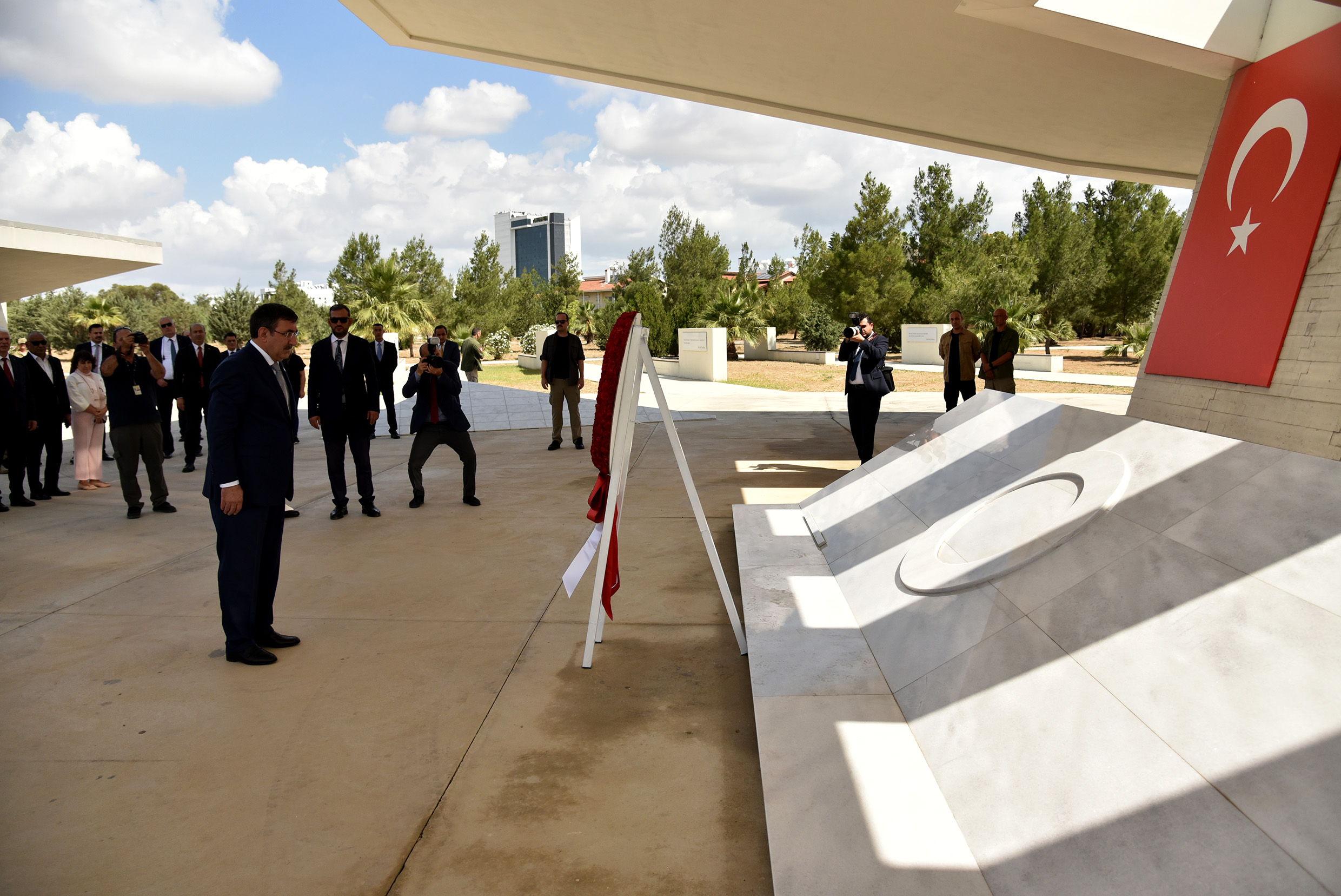 Lefkoşa, 19 Haziran 23 (TAK): Türkiye Cumhurbaşkanı Yardımcısı Cevdet Yılmaz, Kurucu Cumhurbaşkanı Rauf Raif Denktaş’ın anıt mezarını ziyaret etti