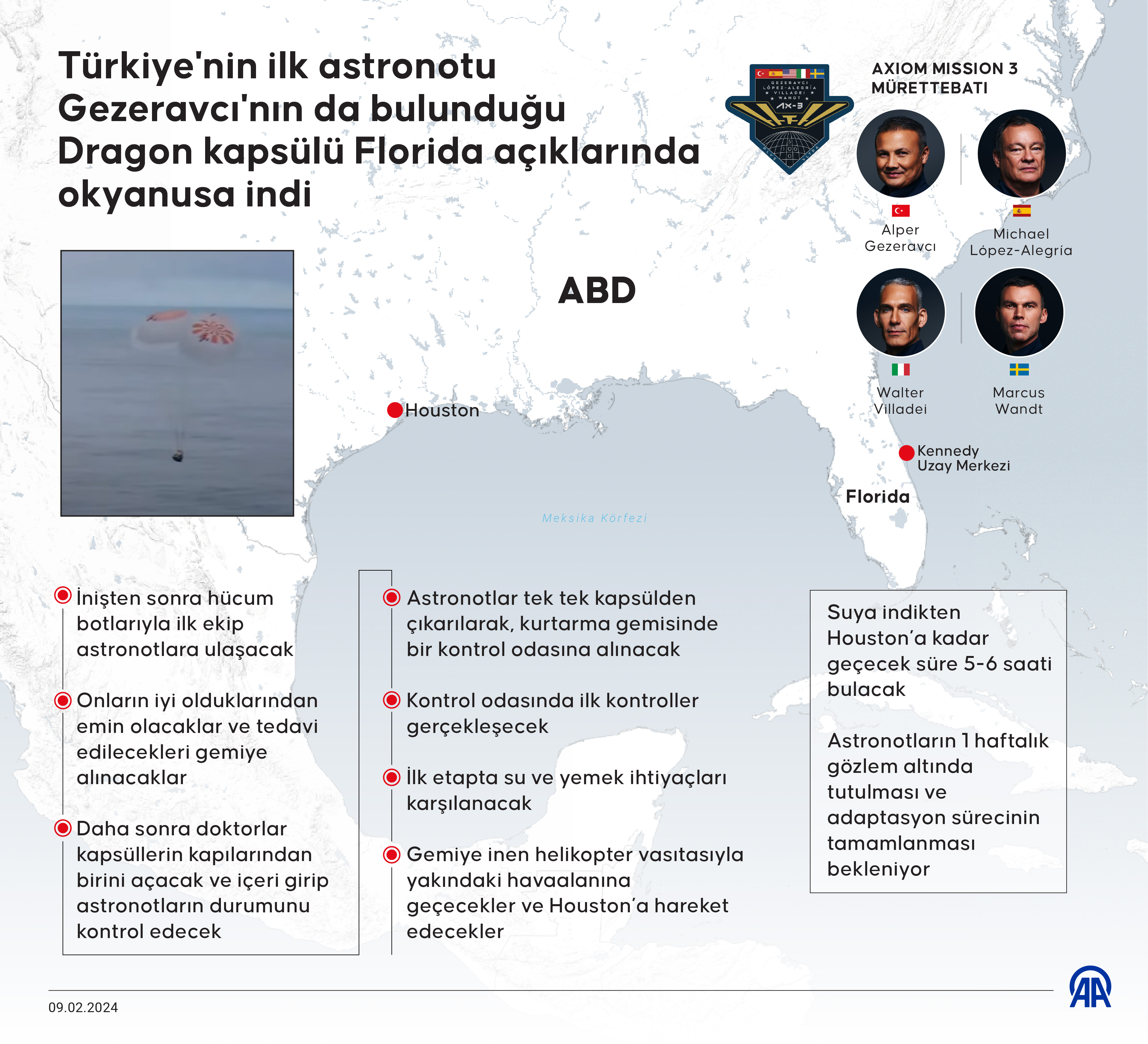 Gezeravcı'nın da içinde bulunduğu Axiom-3 (Ax-3) ekibini taşıyan Dragon