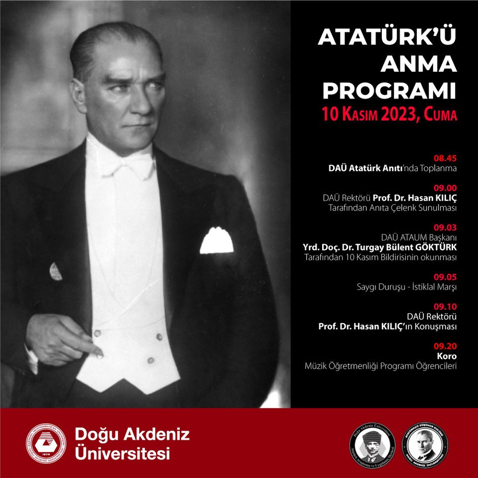 (DAÜ), Türkiye Cumhuriyeti’nin kurucusu Ulu Önder Mustafa Kemal Atatürk’ün ölümünün
