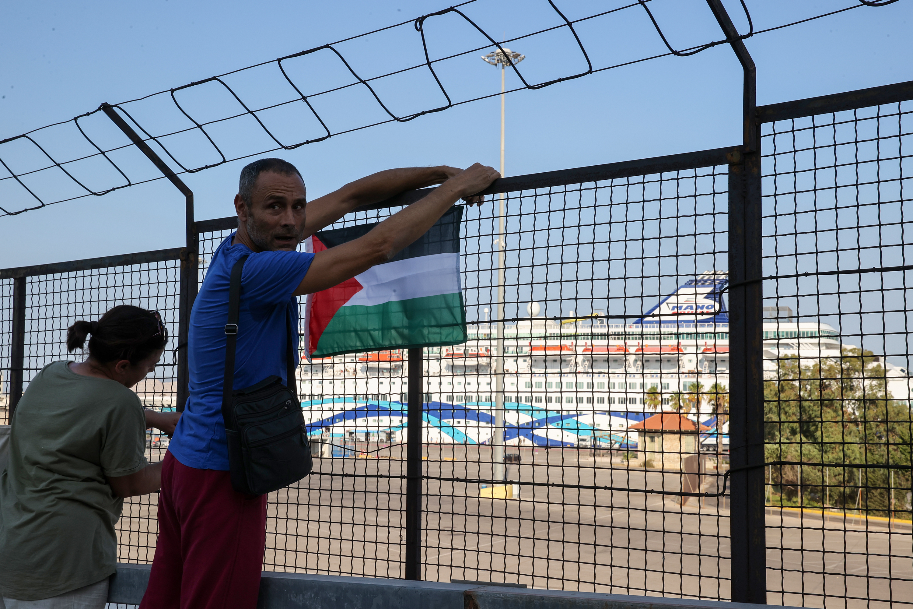 Yunanistan'da Filistin destekçileri, Pire Limanı'nda İsraillileri taşıyan gemiyi protesto etti