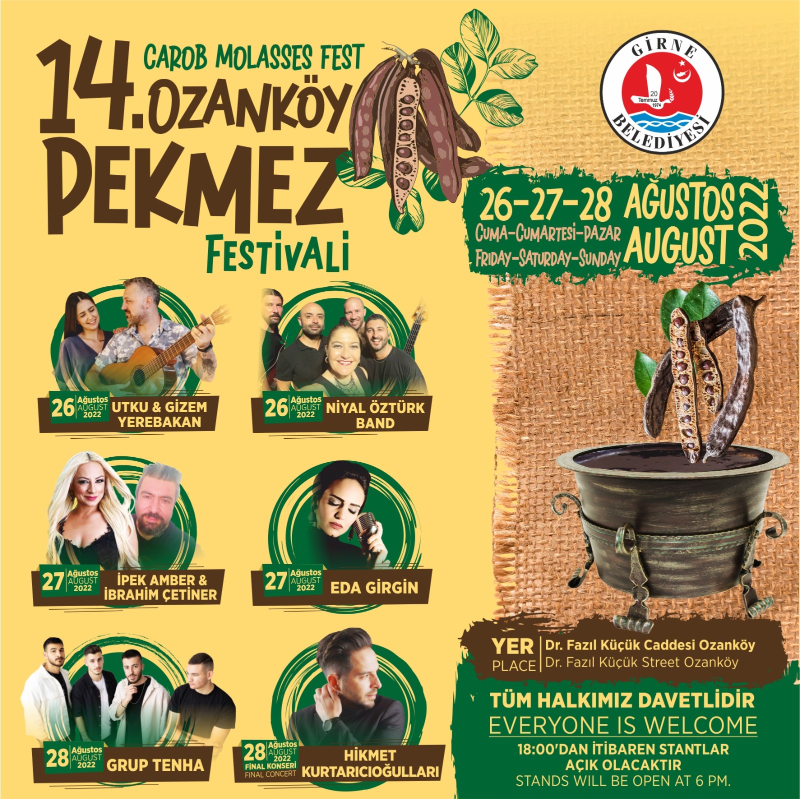 Lefkoşa, 18 Ağustos 22 (TAK):  Girne Belediyesi tarafından düzenlenen “14. Ozanköy Pekmez Festivali” 26 Ağustos Cuma günü başlıyor. 3 gün sürecek festivalin tanıtımı için bugün Girne Belediyesi’nde Başkan Nidai Güngördü’nün katılımıyla basın toplantısı düzenlendi.