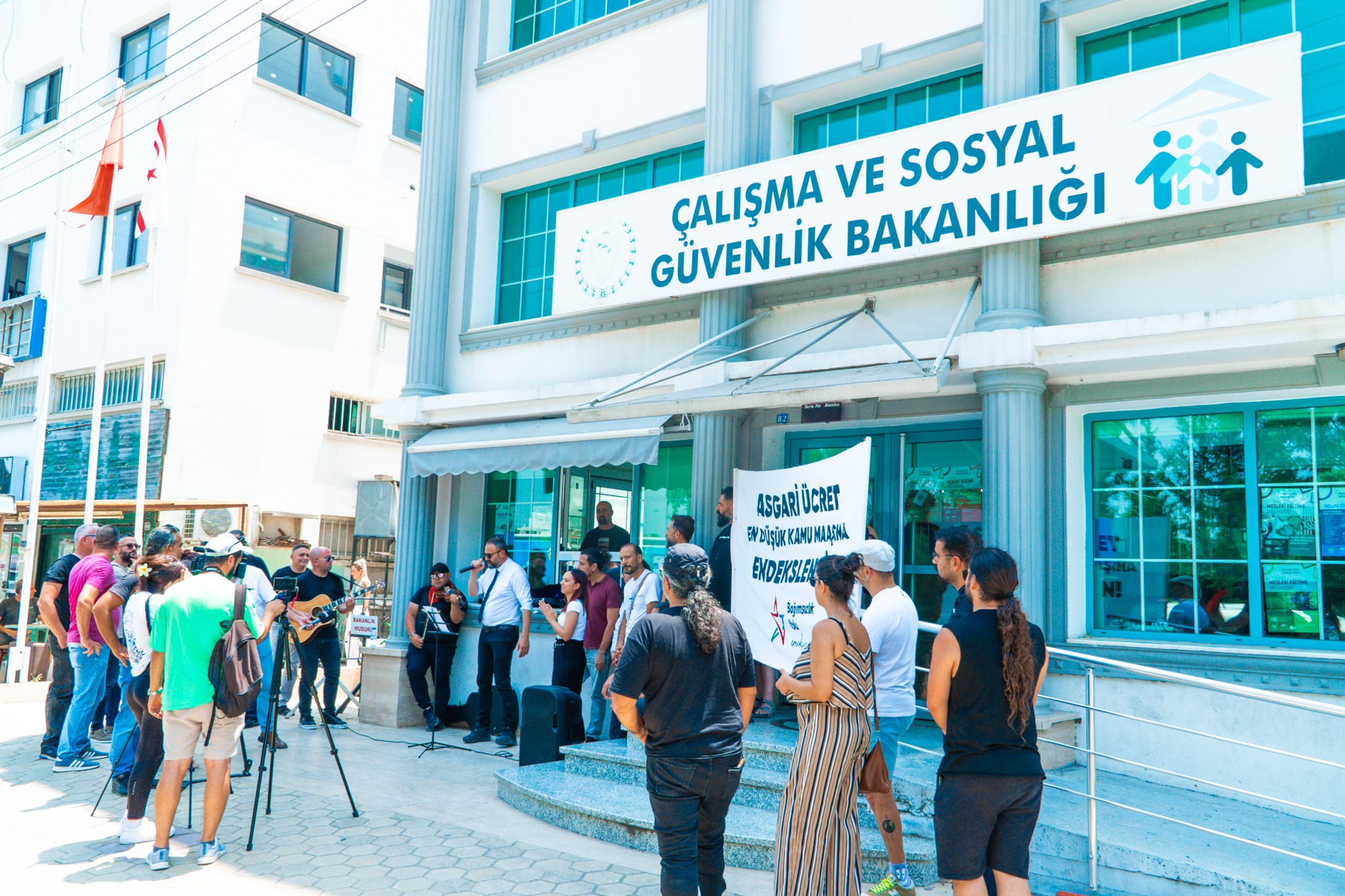 Lefkoşa, 6 Temmuz 23 (TAK): Bağımsızlık Yolu, Çalışma Bakanlığı önünde müzikli protesto, basın açıklaması ve eylem gerçekleştirdi.