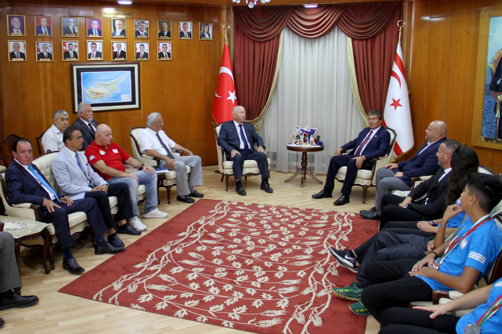 Lefkoşa, 18 Ağustos 22 (TAK): Başbakan Ünal Üstel, KKTC Taekwondo Milli Takımı Sporcuları ile Başkan Eyüp Zafer Gökbilen’i kabul etti.
