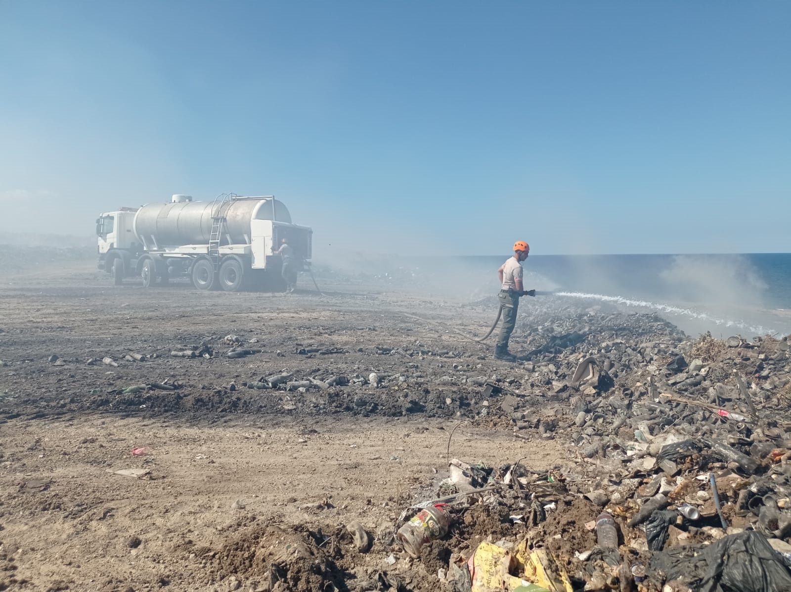Çatalköy ve Esenetepe belediyelerine ait çöp toplama alanındaki yangınla ilgili soğutma çalışmaları sürüyor