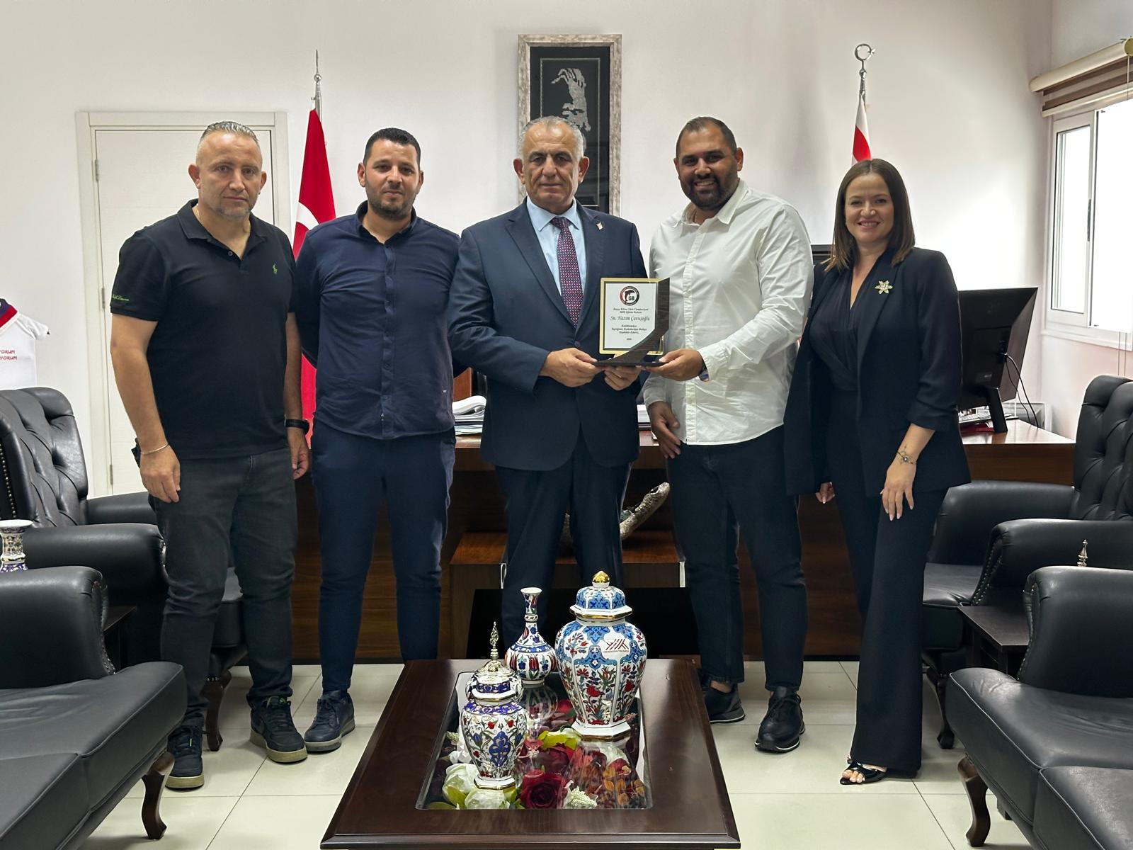 Lefkoşa, 8 Ekim 25 (TAK): Milli Eğitim Bakanı Nazım Çavuşoğlu, Larnaka Gençler Birliği başkanı ve yönetim kurulunu kabul etti.