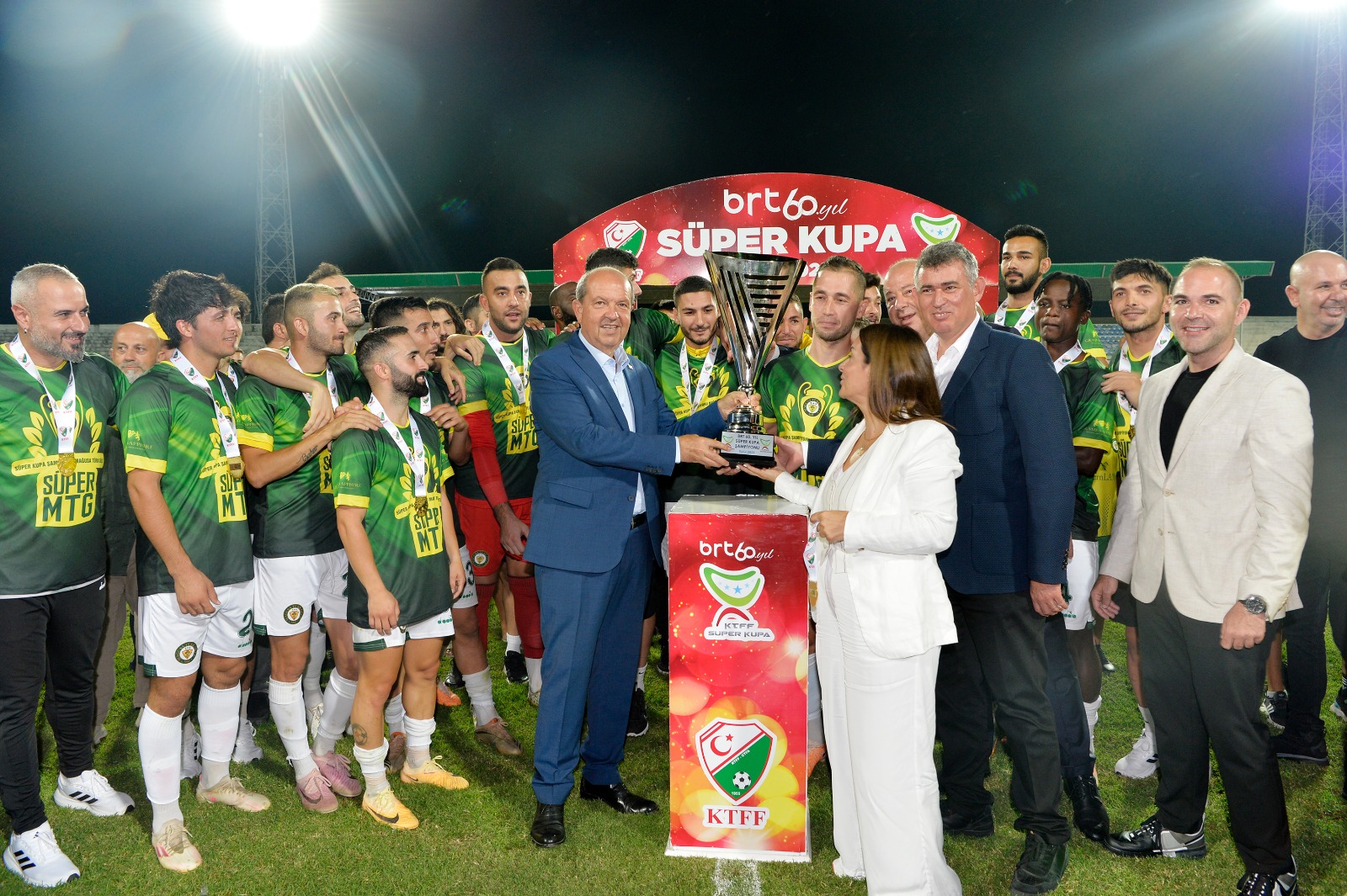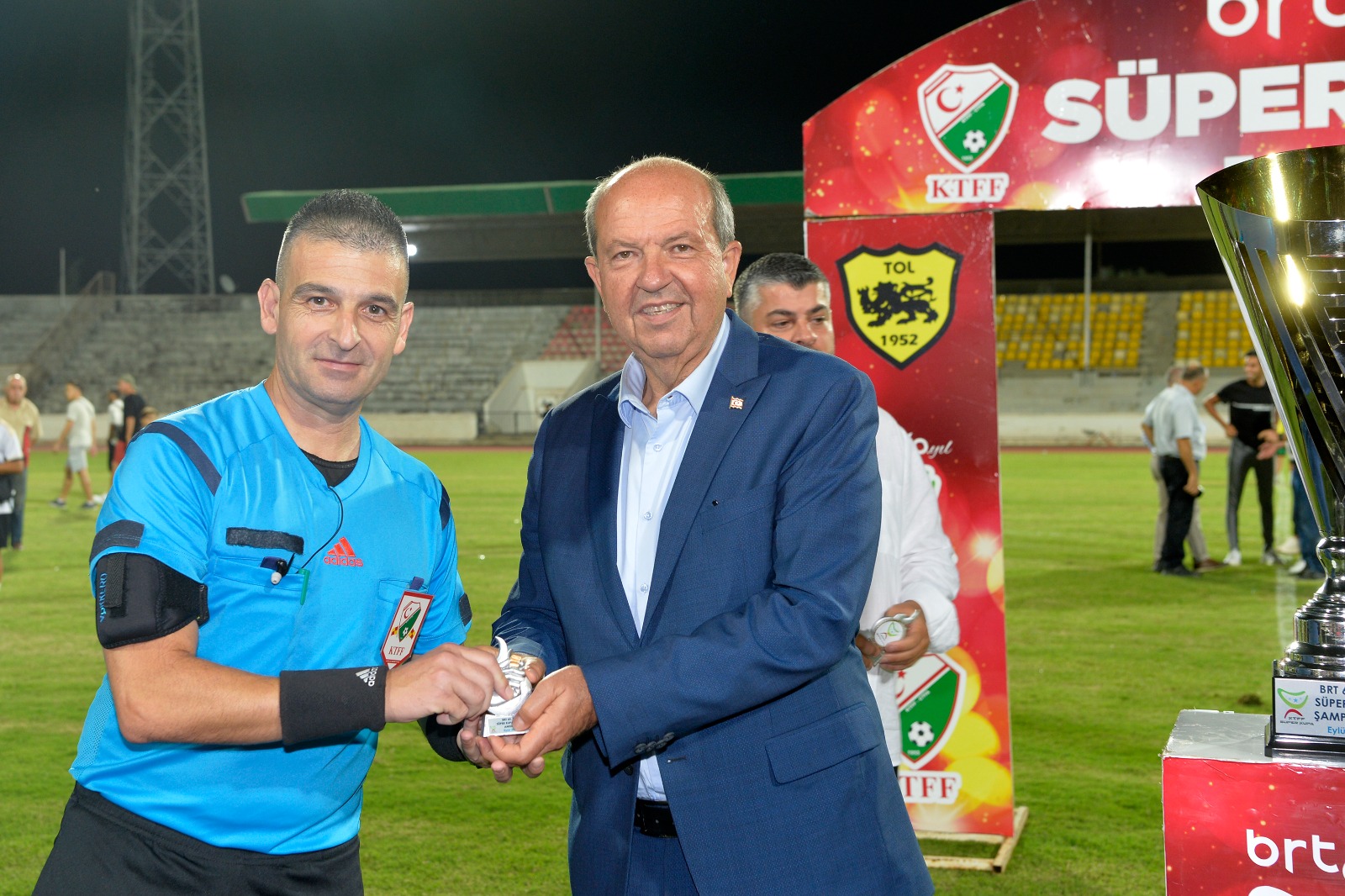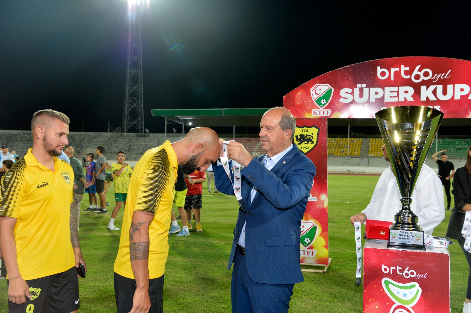 Lefkoşa, 16 Eylül 23 (TAK): Cumhurbaşkanı Ersin Tatar, BRT 60. Yıl Süper Kupa finalini izledi.