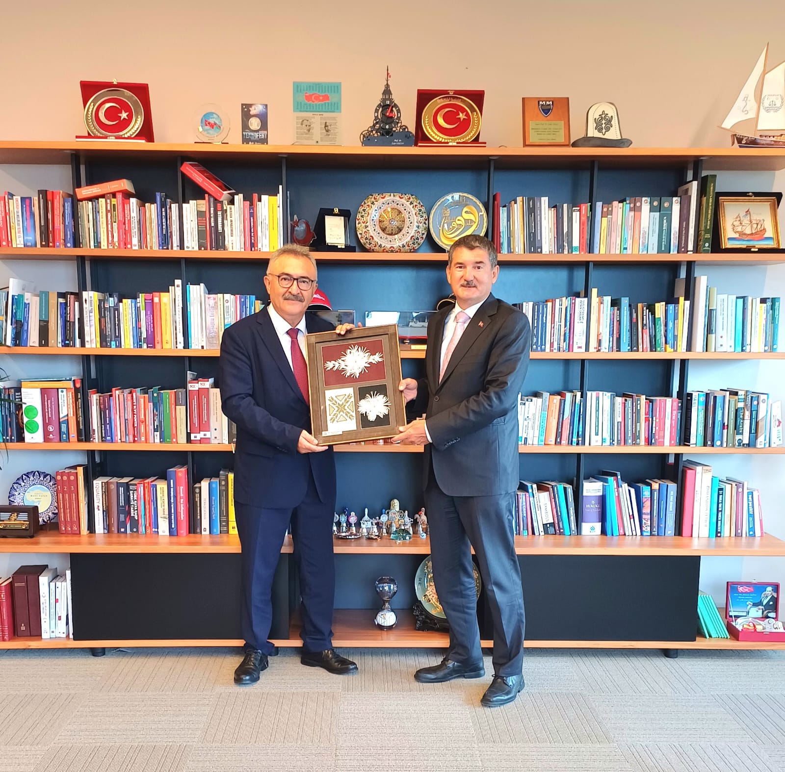 Prof. Dr. Erhan, üniversitenin gelişimini memnuniyetle karşıladığını belirtti. Ziyarette Erhan’a Kıbrıs’a özgü pano takdim edildi.