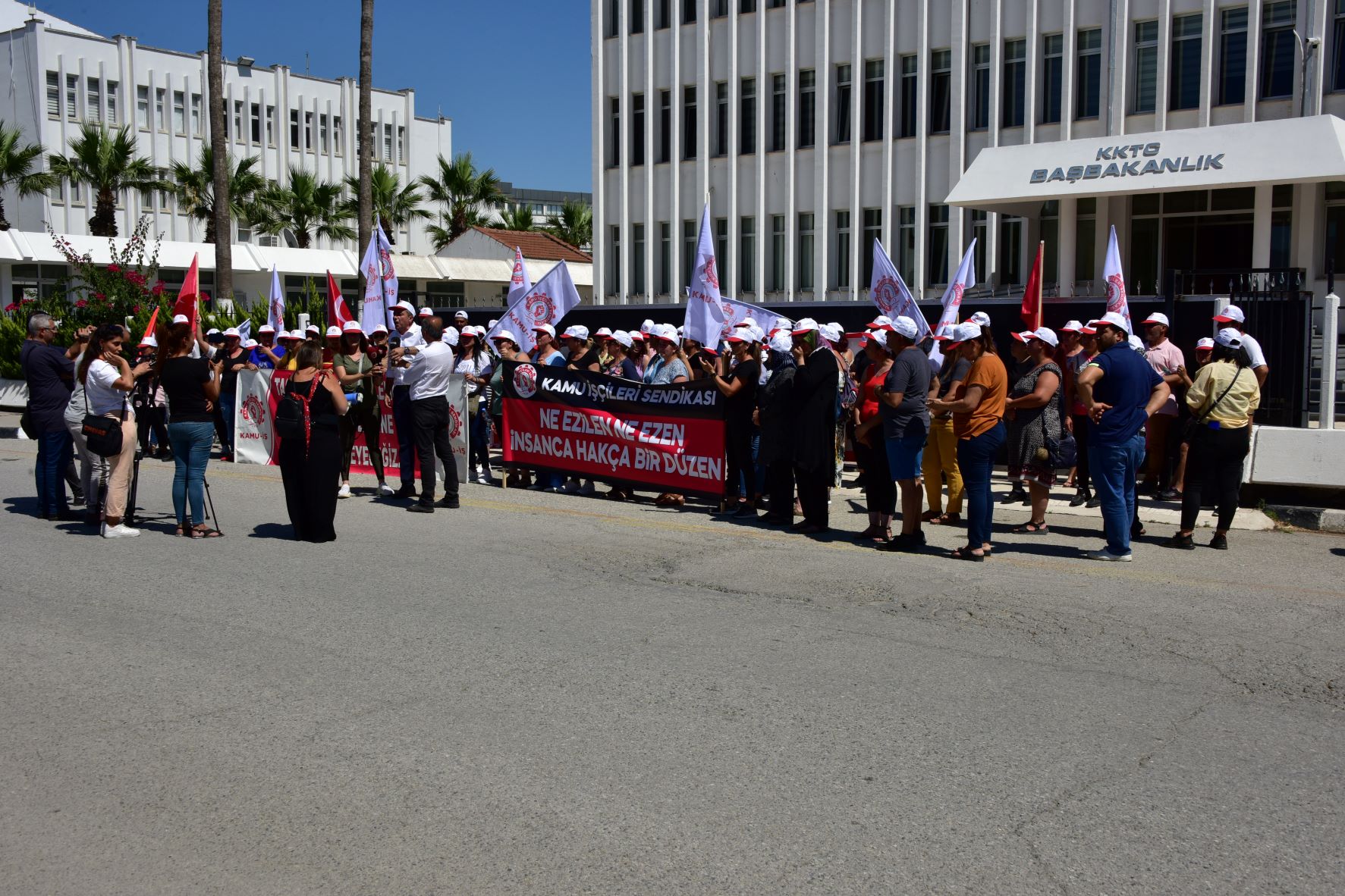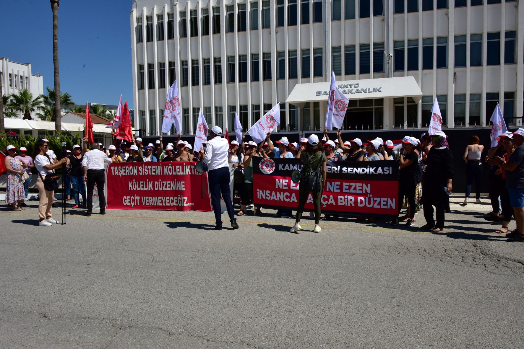 Lefkoşa, 22 Haziran 22 (TAK): Kamu İşçileri Sendikası (Kamu-İş), Başbakanlık önünde "taşeron sistemine karşı" eylem yaptı.