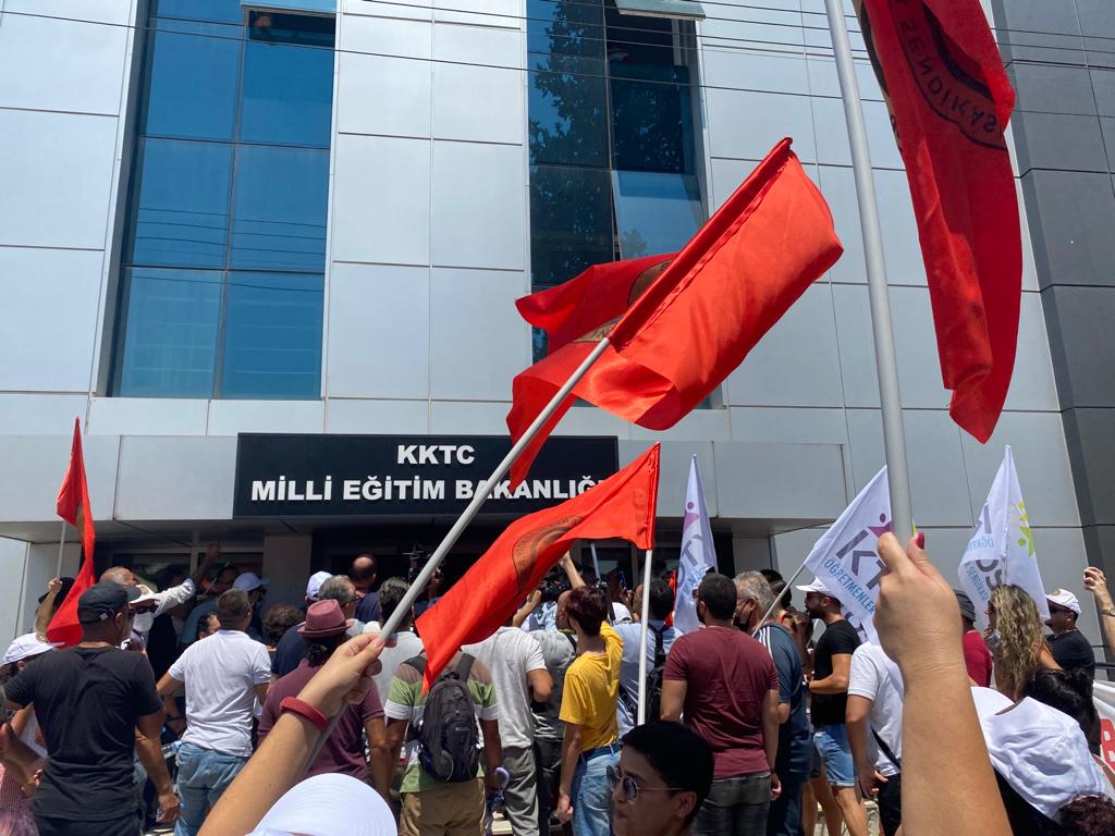 Lefkoşa, 4 Ağustos 22 (TAK): Öğretmen sendikaları Kıbrıs Türk Orta Eğitim Öğretmenler Sendikası (KTOEÖS) ile Kıbrıs Türk Öğretmenler Sendikasi (KTÖS) geçen salı direnişleri sonucu yapılmayan Yüksek Danışma Kurulu toplantısının yarın 13.00'te yapılacağı bilgisi almaları üzerine yarın saat 11.30'dan itibaren Milli Eğitim Bakanlığı önünde olacaklarını açıkladı.