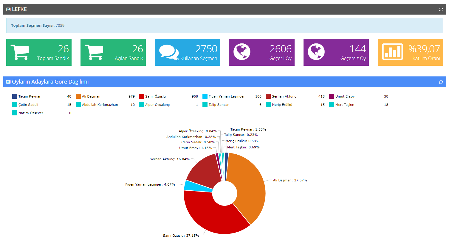 Lefkoşa, 25 Haziran 23 (TAK): Milletvekilliği ve Yerel Kuruluş Organları Ara Seçiminde Lefke ilçesinde kurulan 26 sandıkta oy sayımı tamamlandı.