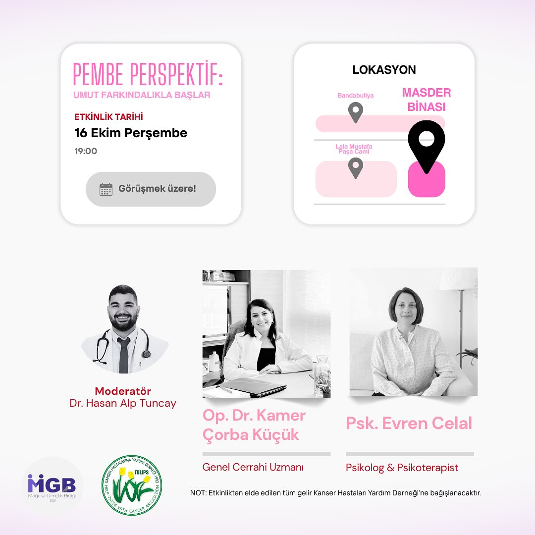 14 Ekim 25 (TAK): Mağusa Gençlik Birliği, meme kanseri farkındalığını artırmak,