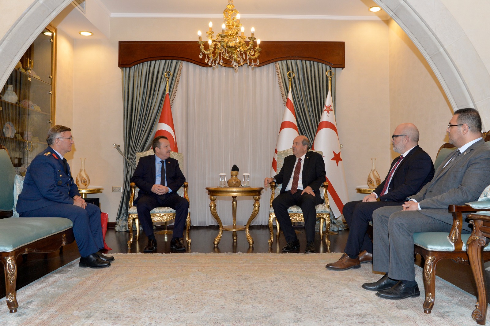 Lefkoşa, 29 Kasım 23 (TAK): Cumhurbaşkanı Ersin Tatar, TC Milli Savunma Üniversitesi Rektör Yardımcısı Prof. Dr. Serdar Salman ve Hava Harp Enstütüsü Müdürü Hv. Plt. Tümgeneral Yaşar Kadıoğlu’nu kabul etti.