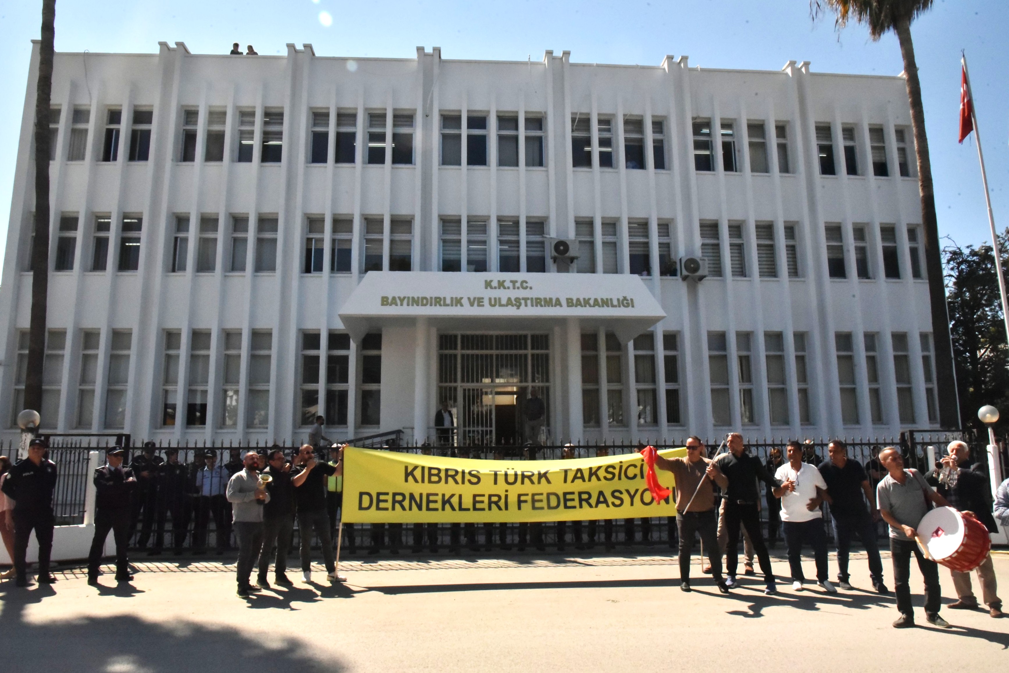 Kıbrıs Türk Taksici Dernekleri Federasyonu, Bayındırlık ve Ulaştırma Bakanlığı önünde eylem yaptı