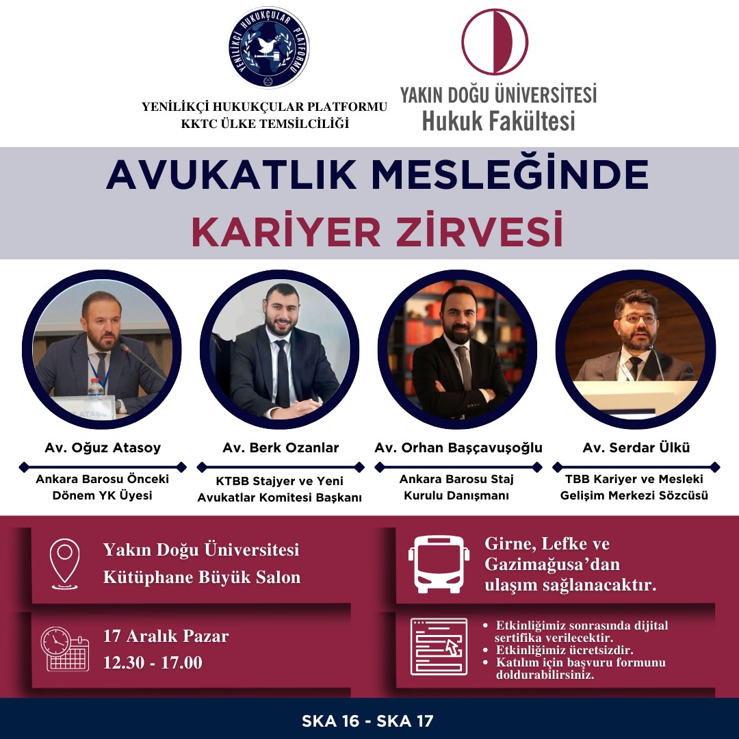 Yakın Doğu Üniversitesi Hukuk Fakültesi işbirliğiyle Pazar günü “Avukatlık