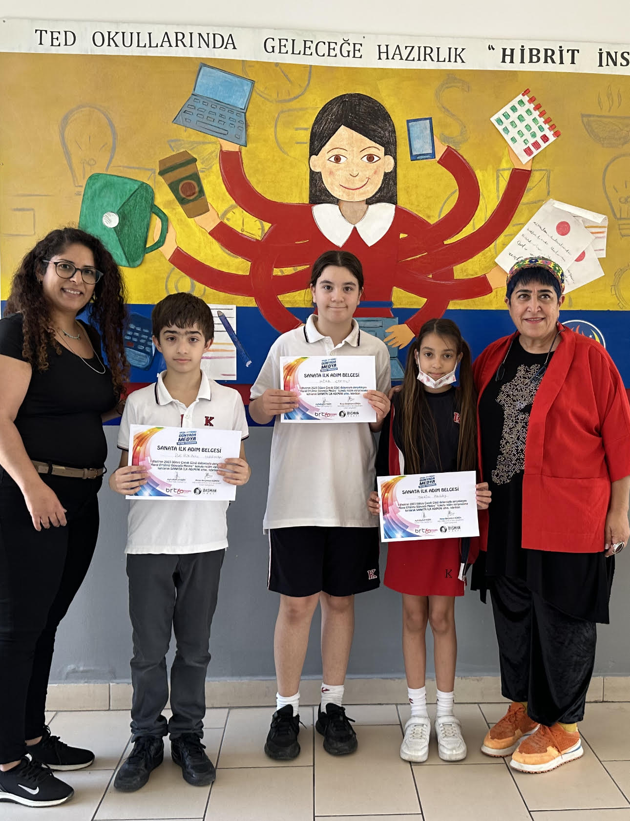 “Hayal Ettiğiniz Dünyada Medya” konulu resim sergisi katılım belgeleri dağıtılıyor