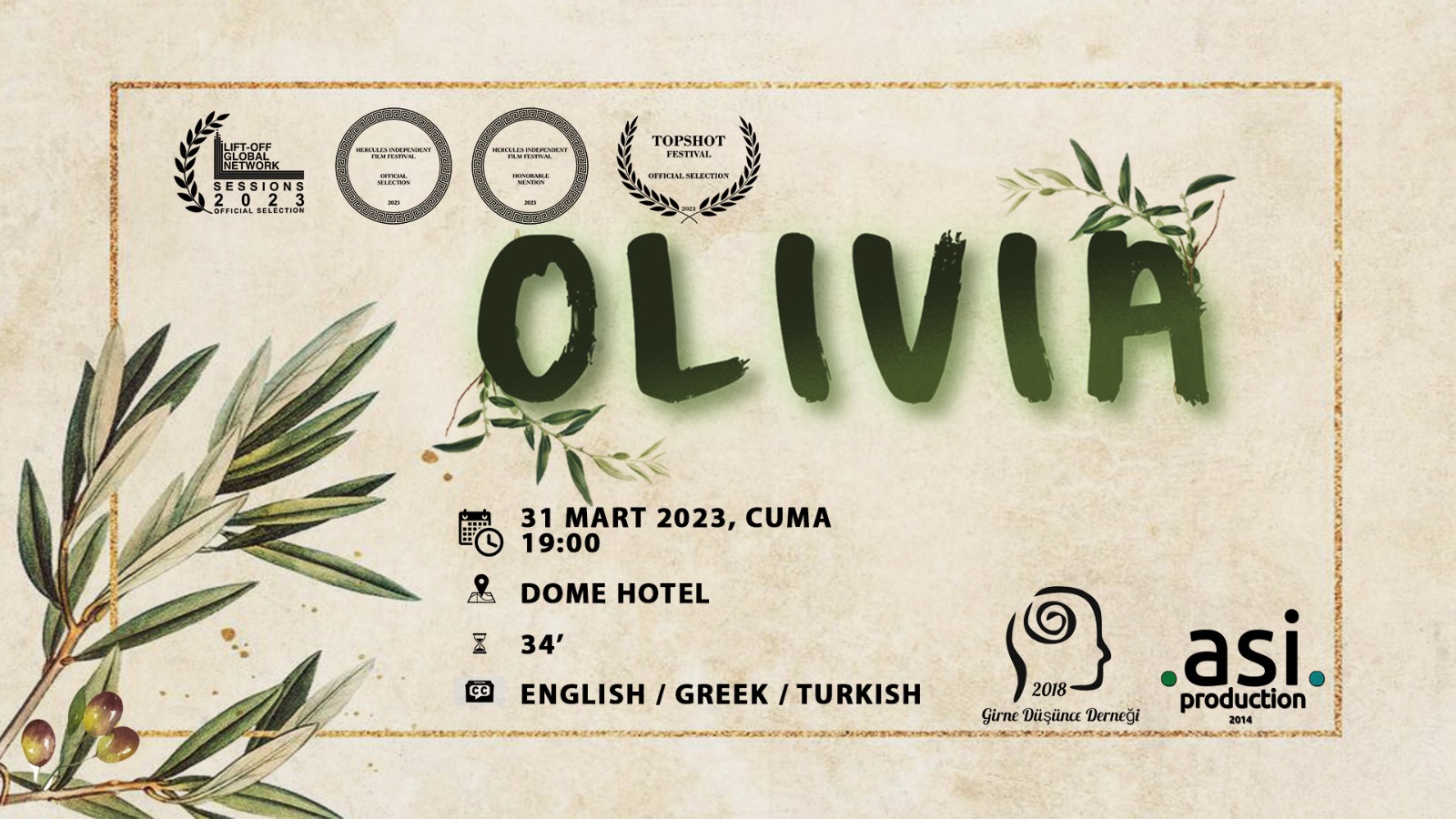 Lefkoşa, 27 Mart 23 (TAK): Olivia isimli kısa belgesel, Girne Düşünce Derneği ev sahipliğinde cuma günü Dome Hotel’de gösterilecek.
