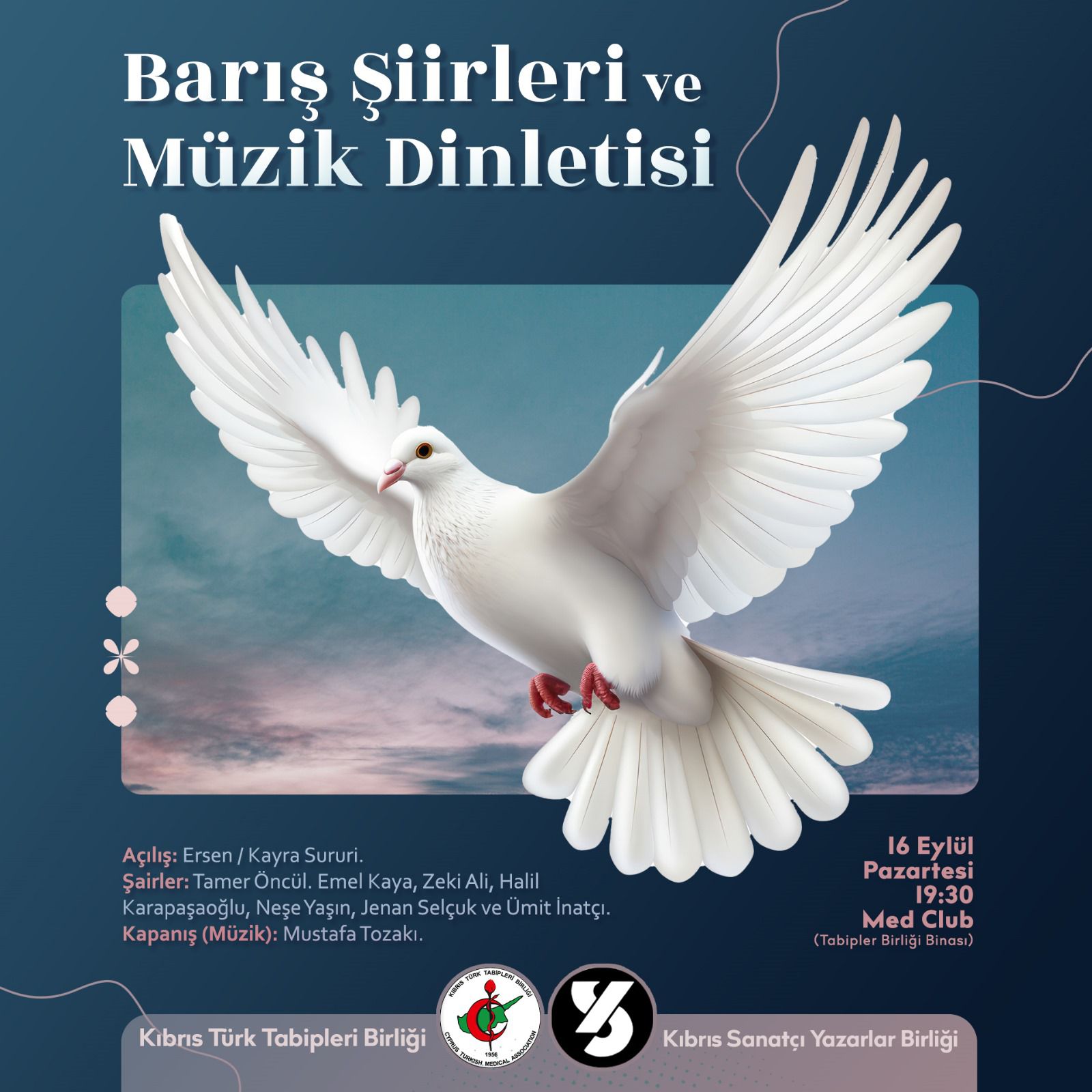 "Barış Şiirleri ve Müzik Dinletisi" pazartesi akşamı KTTB Lokali'nde yer alacak