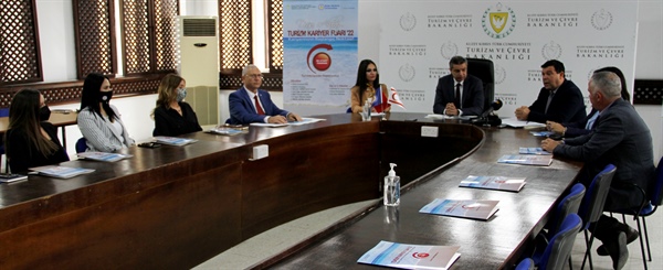 Lefkoşa, 8 Nisan 22 (TAK): Başbakan Yardımcılığı, Turizm, Kültür, Gençlik ve Çevre Bakanlığı ile Doğu Akdeniz Üniversitesi (DAÜ) Turizm Fakültesi iş birliğinde, 14 Nisan Perşembe günü düzenlenecek “Doğu Akdeniz Turizm Kariyer Fuarı 2022” ile ilgili basın toplantısı düzenlendi.