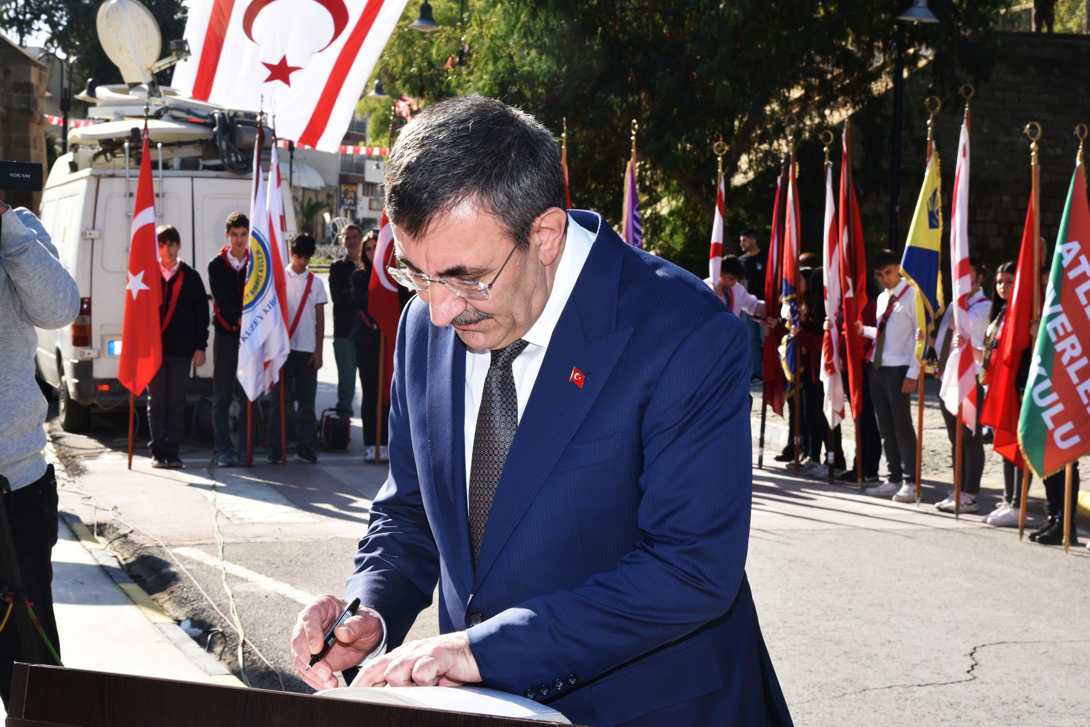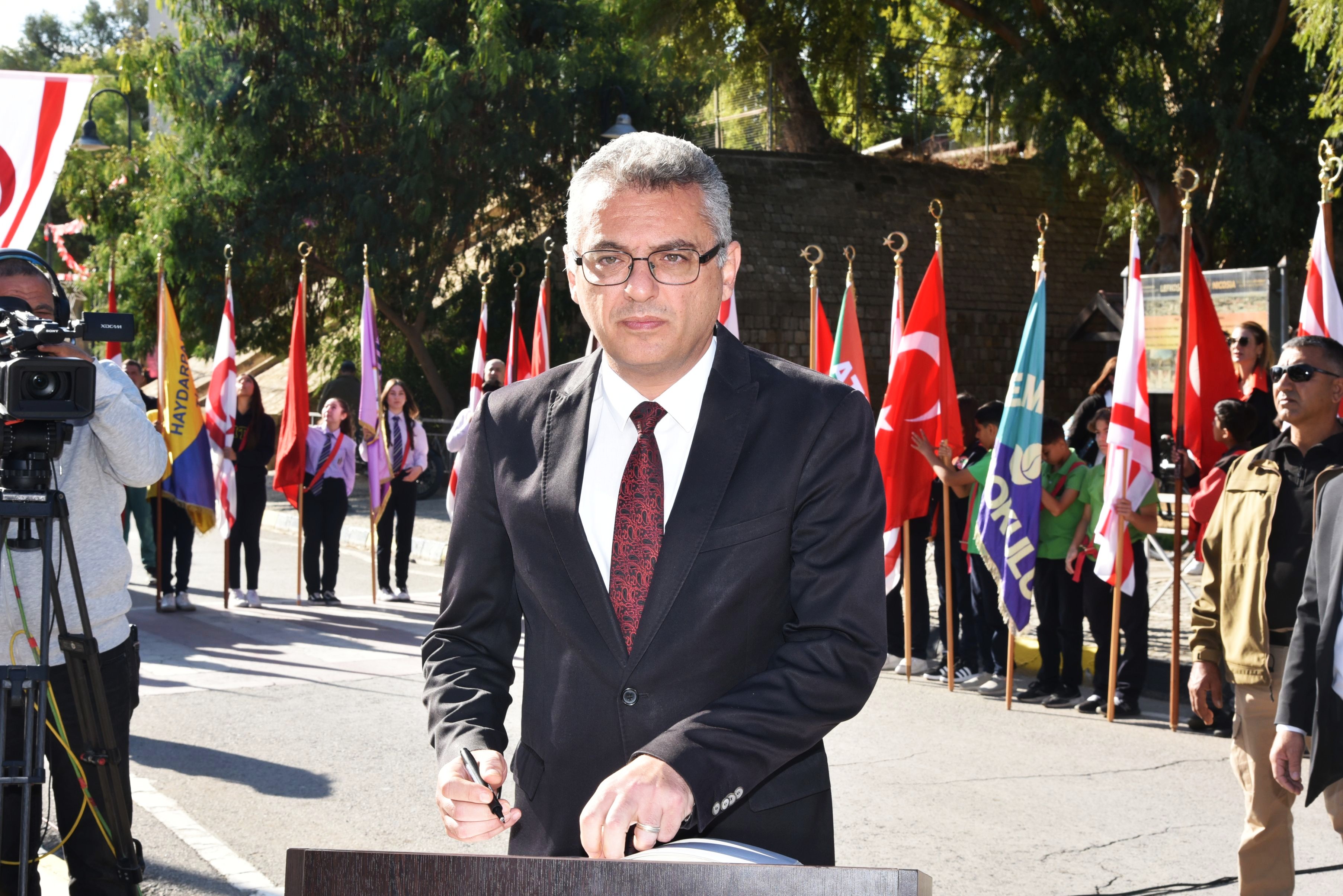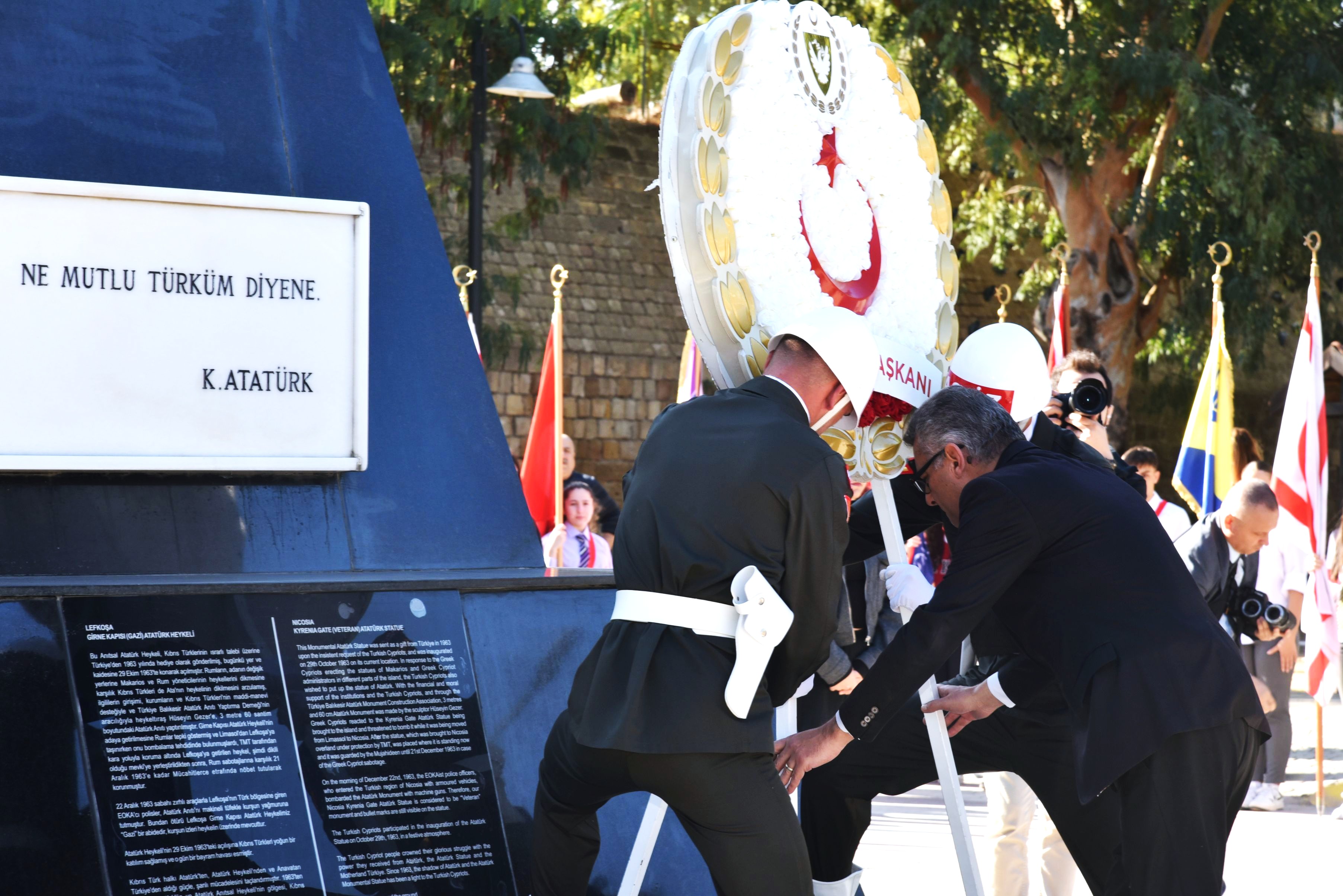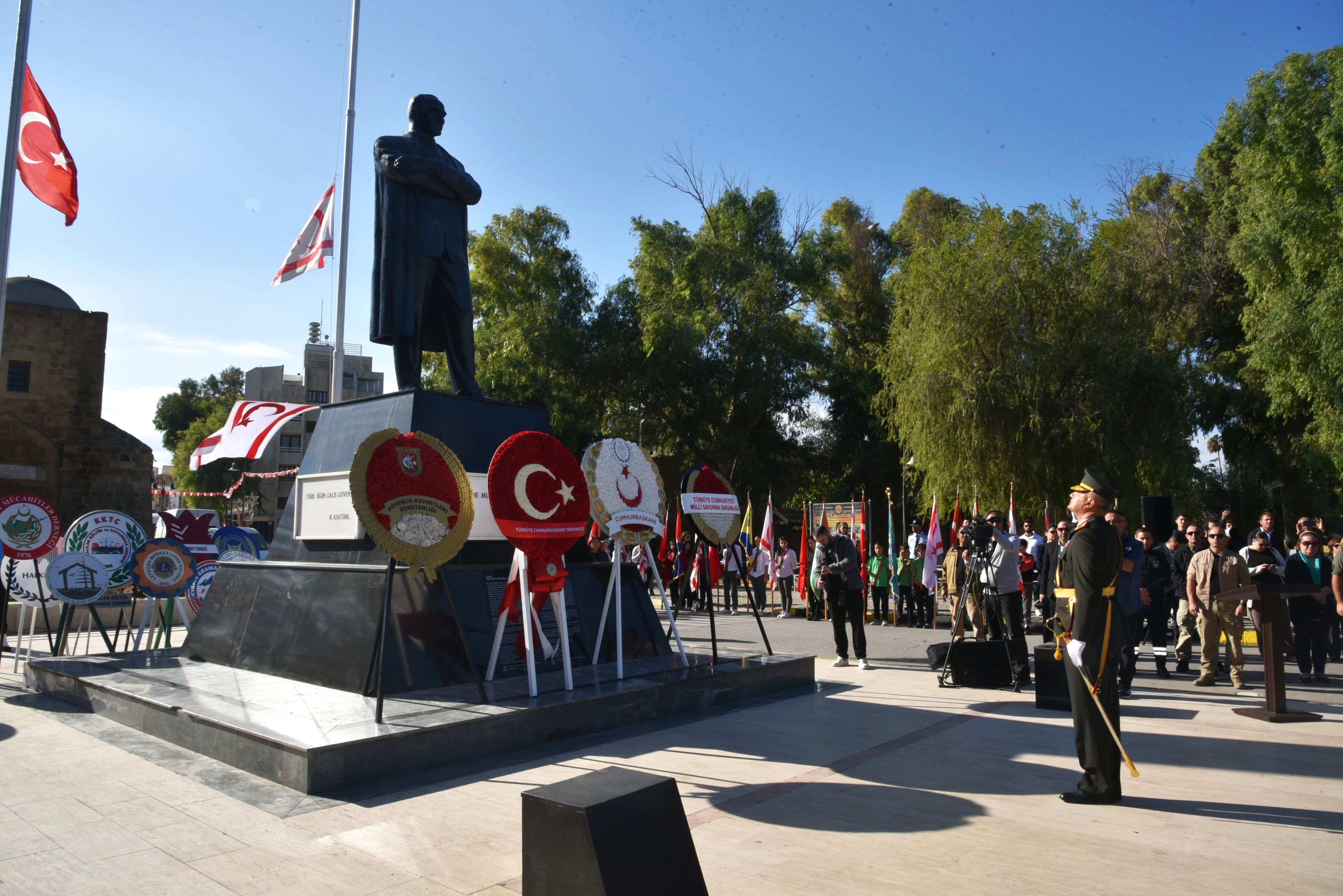 Lefkoşa, 15 Kasım 25 (TAK): KKTC’nin 42. kuruluş yıl dönümü nedeniyle Girne Kapısı’ndaki Atatürk Anıtı önünde tören düzenlendi.