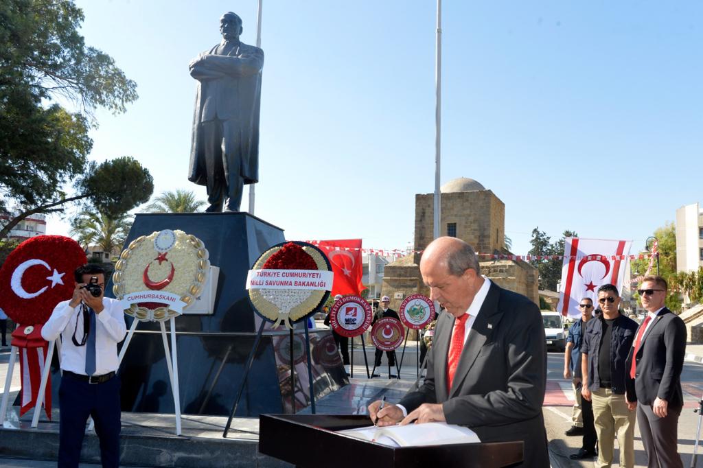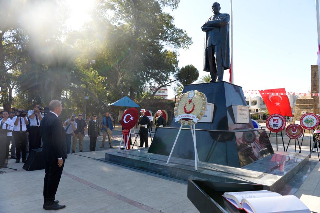 Lefkoşa, 20 Temmuz 22 (TAK): 20 Temmuz Barış ve Özgürlük Bayramı kutlamaları çerçevesinde Lefkoşa'daki ilk tören Atatürk Anıtı önünde düzenlendi.